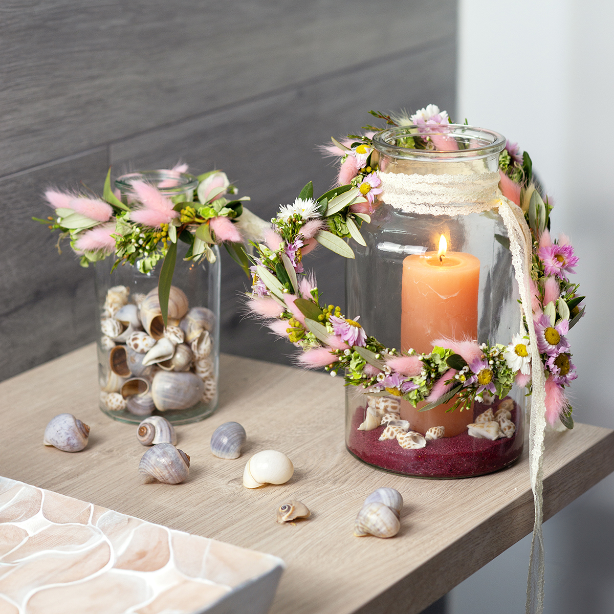 The yellow lace ribbon offers a fresh look with the bright green of early bloomers or green paper gift ribbon. Wrap a candle jar, a lantern or wooden decoration such as a planter with this ribbon and give your decorations a nostalgic accent!