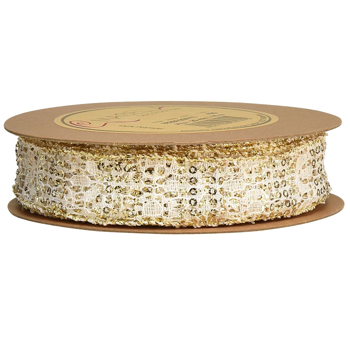 Lace ribbon white with gold accents decorative ribbon lace 25mm 15m