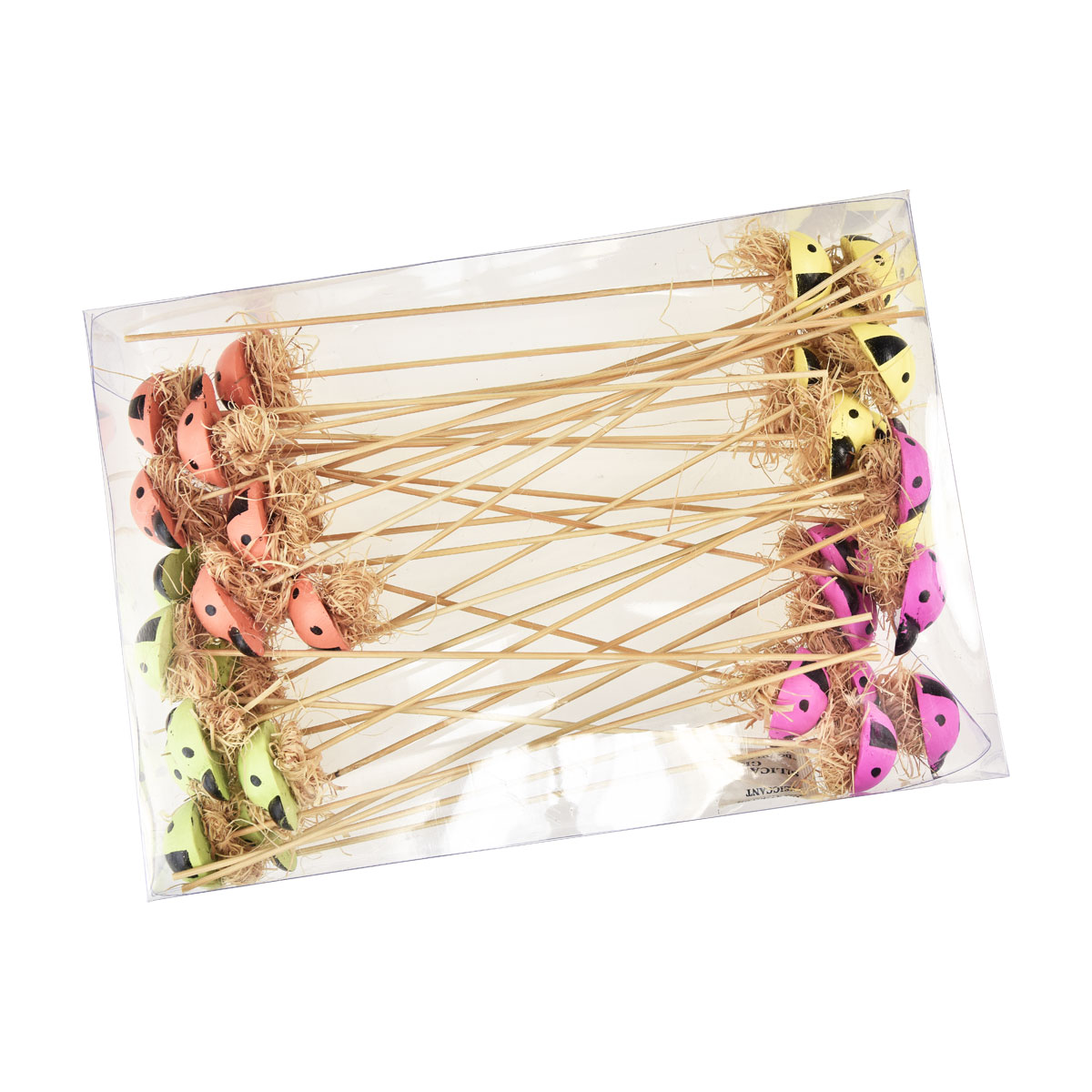You will receive the wooden flower plugs with ladybird decorations in packs of 32, sorted in 4 different colors.