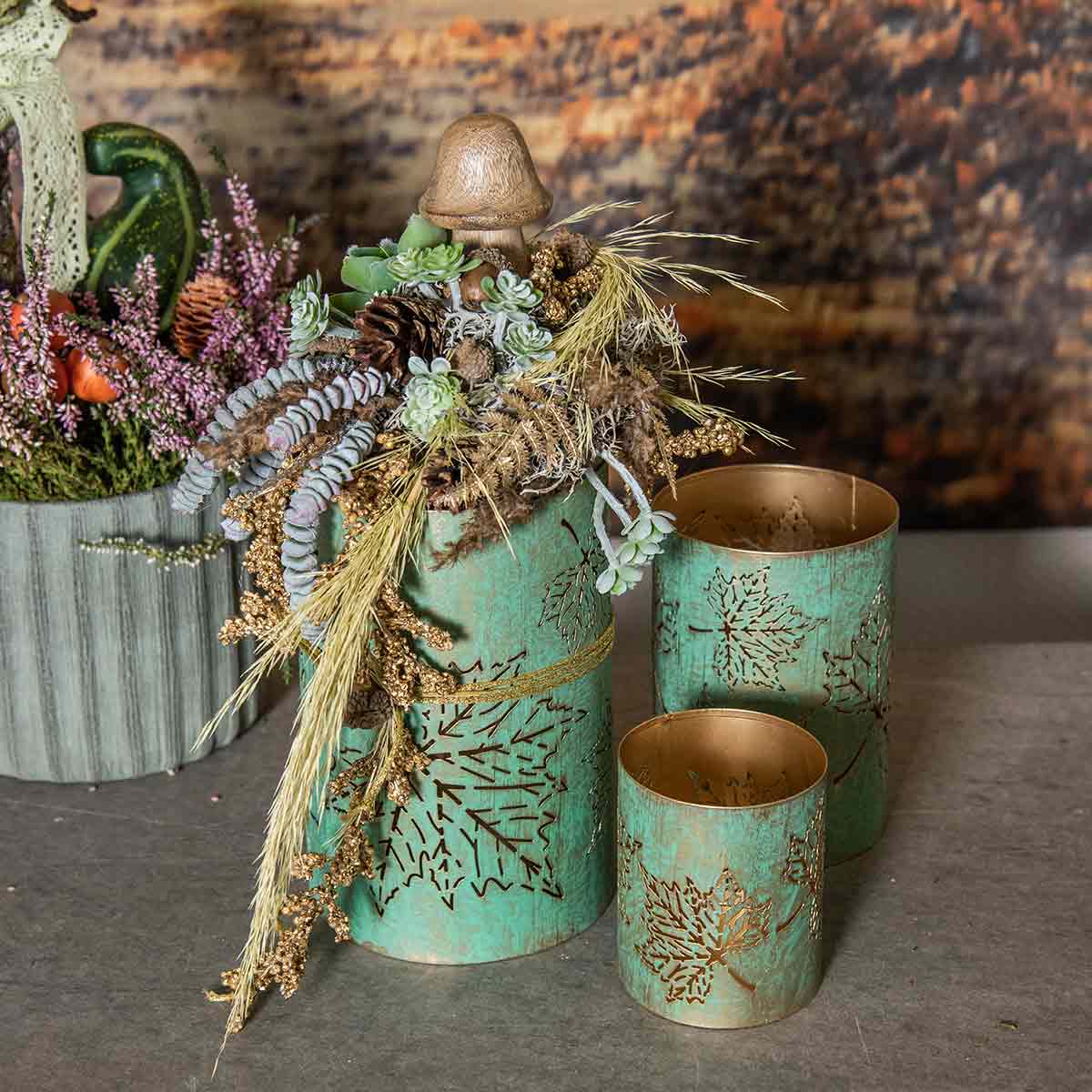 Lantern Autumn Tealight Holder Metal Ø8/10/13cm Set of 3