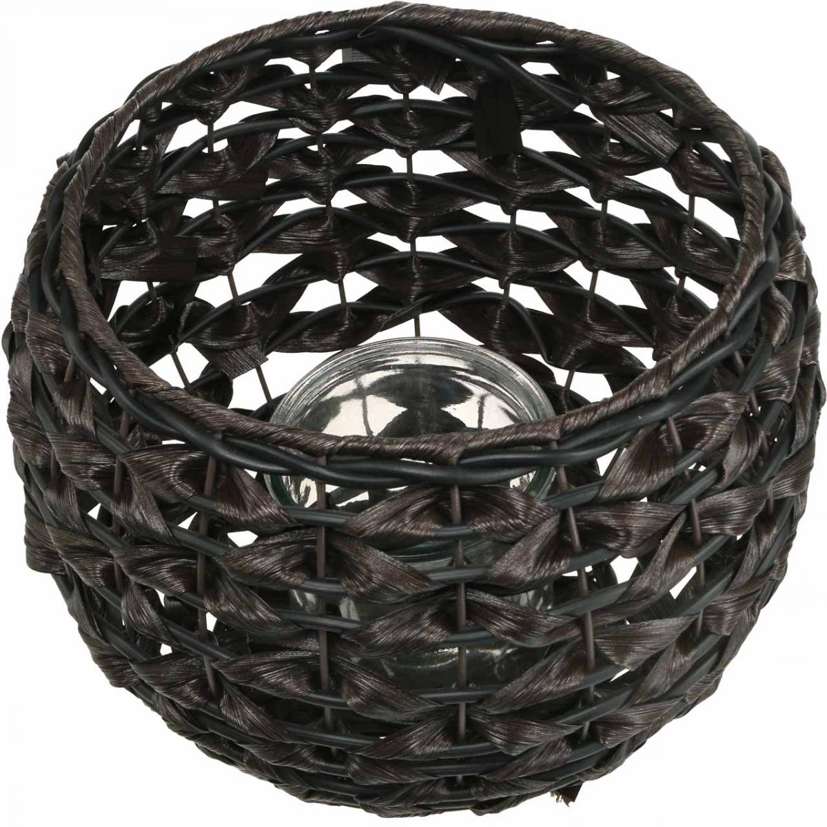 Lantern braided black, brown summer decoration Ø31cm H25cm