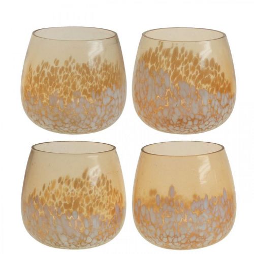 Lantern glass tealight holder glass decoration brown white Ø8cm 4pcs