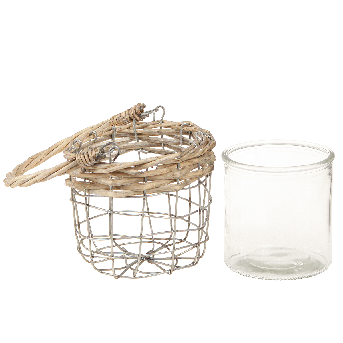 Lantern hanging decoration metal glass willow Ø13cm H12cm 2pcs