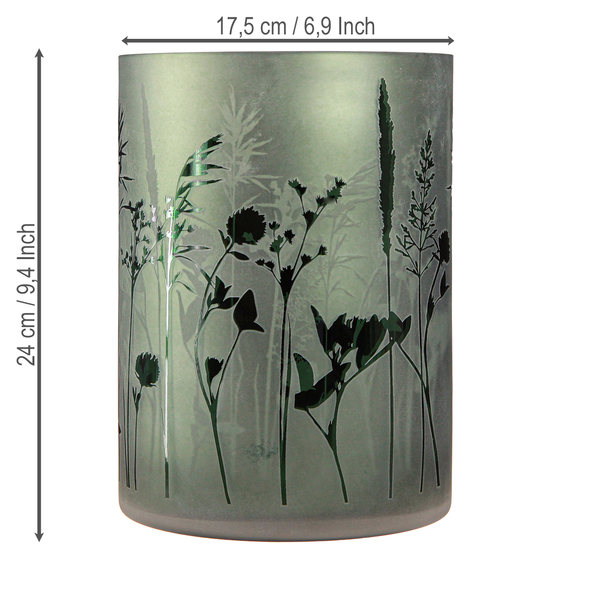 Product name: Lantern Large Decorative Glass in White Green Motif Meadow H24cm