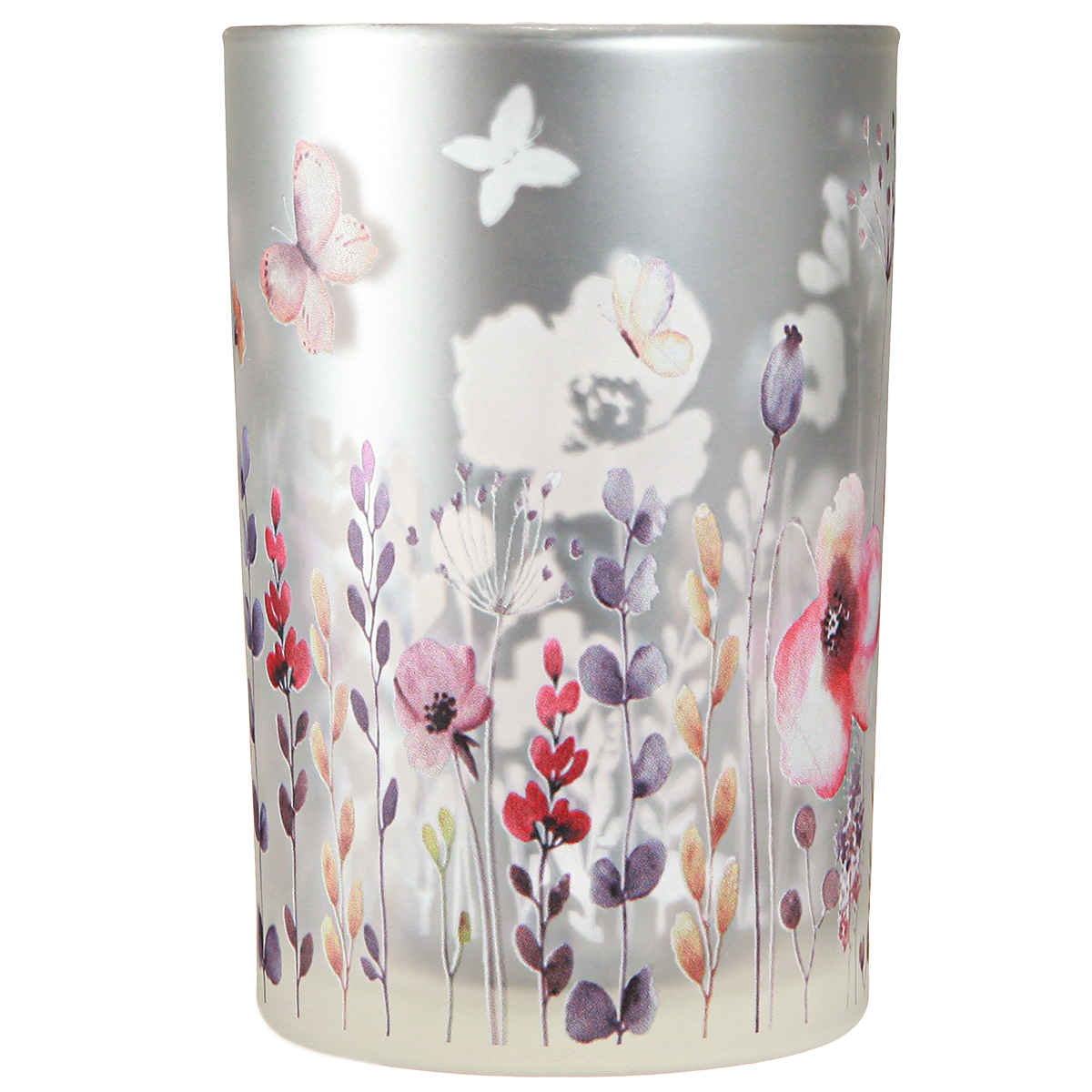 Transform any room with the elegant silver glass lantern, which invites you to dream with its butterfly and poppy motif. With a height of around 18 cm and a colorful design, it is the perfect accessory for spring and summer table decorations. The second motif, which is provided on the silver-colored inner layer, creates a fascinating 3D effect that captivates every viewer. This high-quality glass lantern not only brings light into your home, but also exudes a touch of glamour and elegance. It can be wonderfully combined with other decorative elements from Floristik24, such as stylish dried flowers or modern vases, and is ideal as a mini vase for dry decorations as a spring and summer decoration. Thanks to its versatile uses, it is not only a candle glass, but also a subtle decorative glass for romantic evenings and banquets.