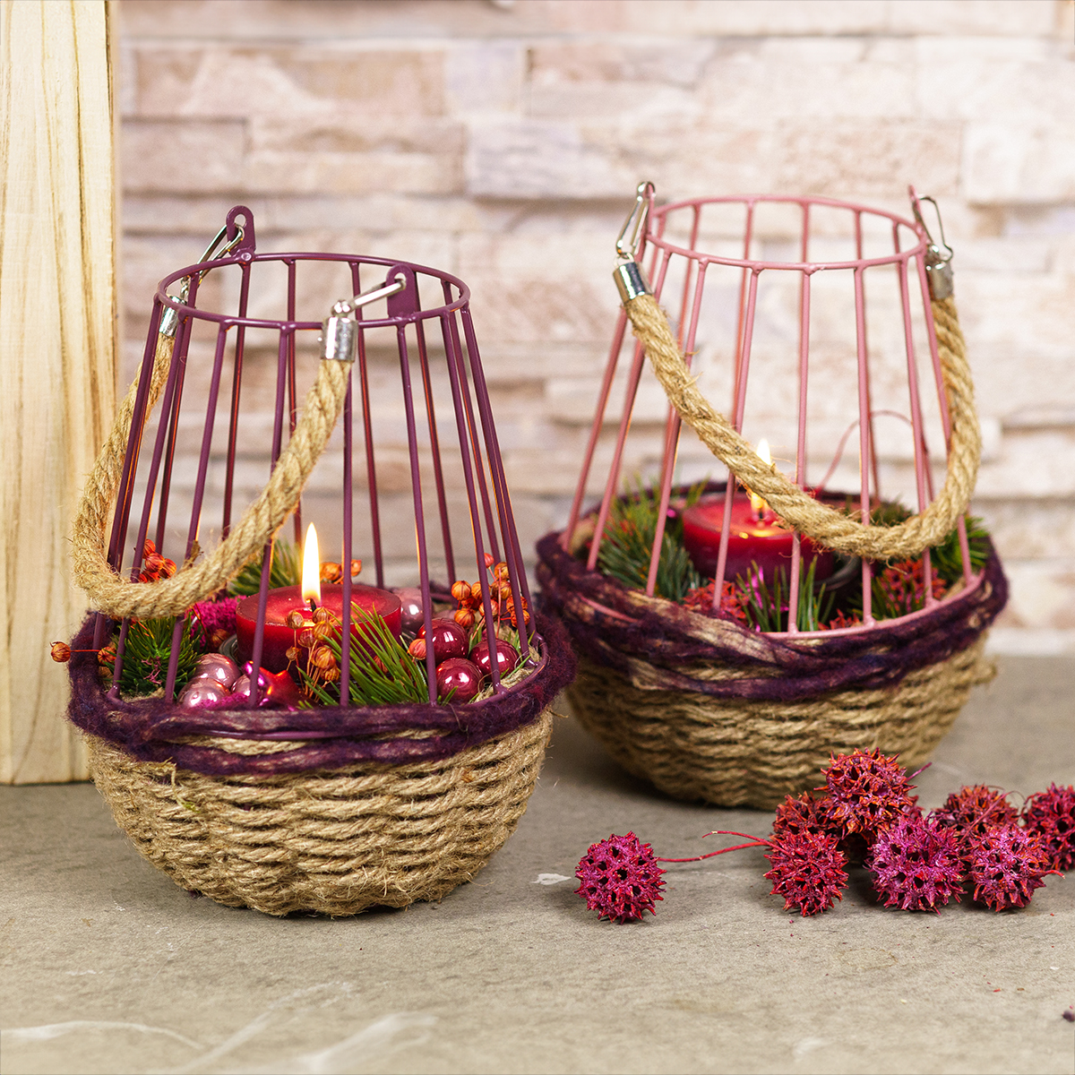 The lantern with handle combines the rustic charm of natural material with the elegance of the purple metal structure. In the trendy color purple, our decorative lantern is a real eye-catcher and gives every room and every occasion a warm atmosphere. Perfect for romantic evening lighting or as a creative accent at garden parties.