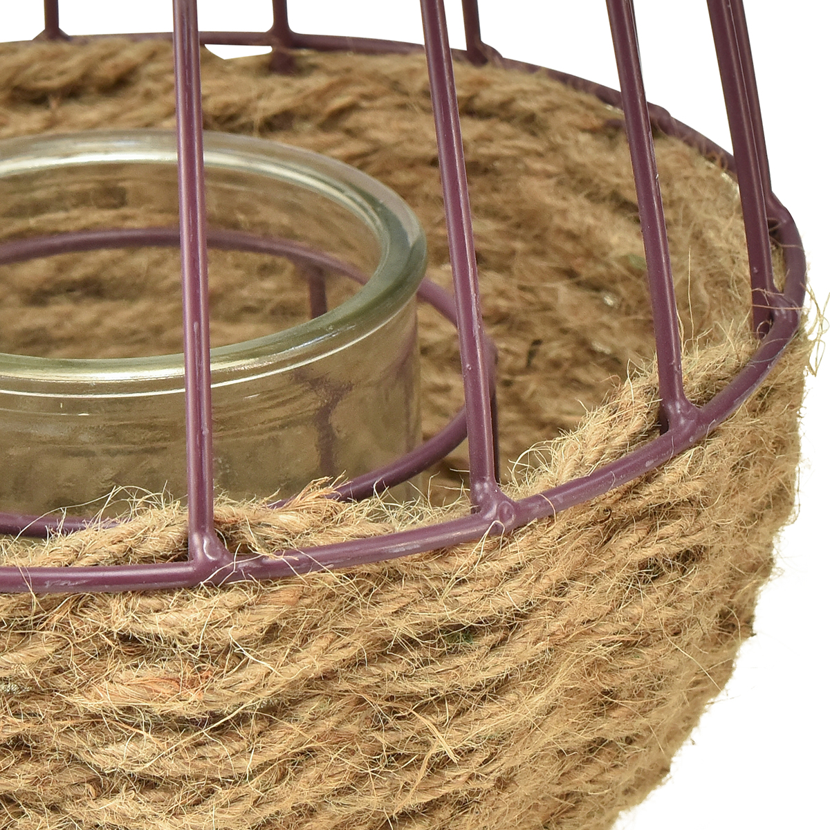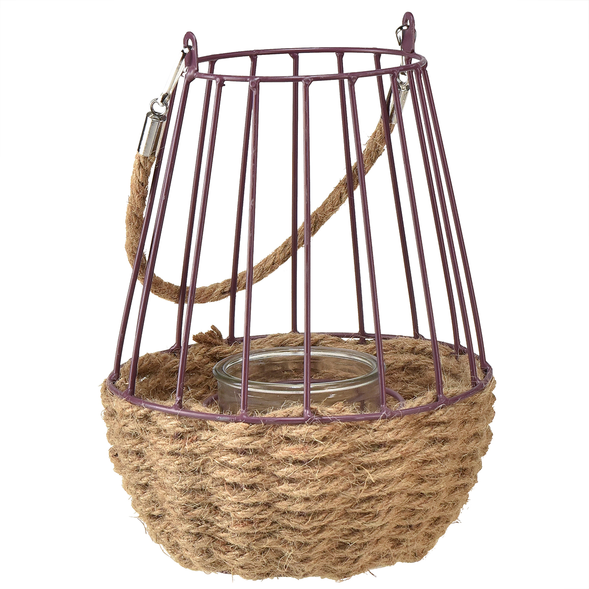 Lantern with handle and glass purple natural Ø18cm H22cm