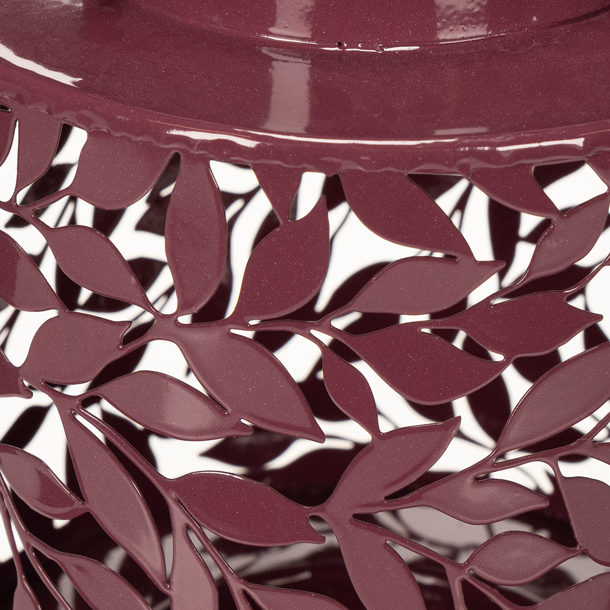 The sturdy metal frame with its delicate leaf pattern is weatherproof and rust-resistant, making it a reliable companion even on rainy days. The warm red color adds a touch of elegance, while the leaf design brings a natural feel. This combination fits beautifully into Mediterranean-style gardens or harmonizes with natural furnishings such as wood or rattan. It's also practical – its sturdy handle allows it to be moved in an instant.