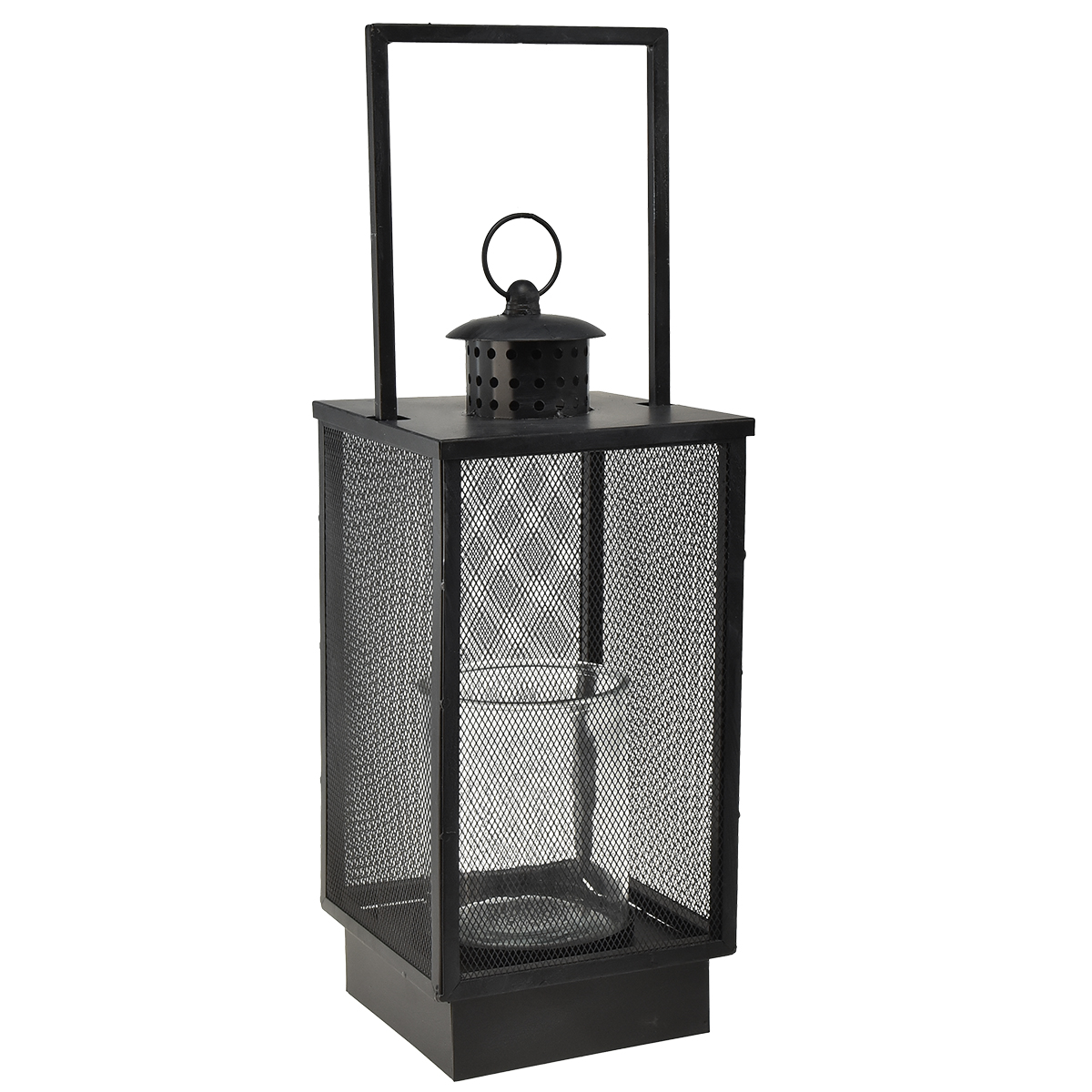 Product name: Large metal lantern with wire windows in antique grey – 19x36x60 cm – decorative lantern with carrying handle