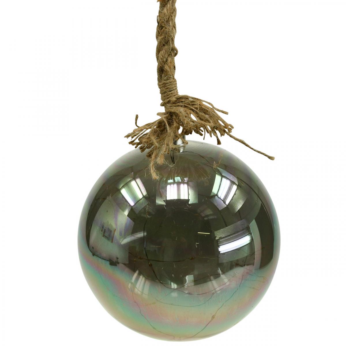 The large glass ball of light is tinted silver-grey and has a rustic jute cord for hanging. A chain of LED lights is hidden inside the glass ball for Christmas. As a window decoration or hung from the ceiling, once fitted with batteries and switched on, a total of 40 small LED lights of the mini light chain bring the LED glass ball to light up.