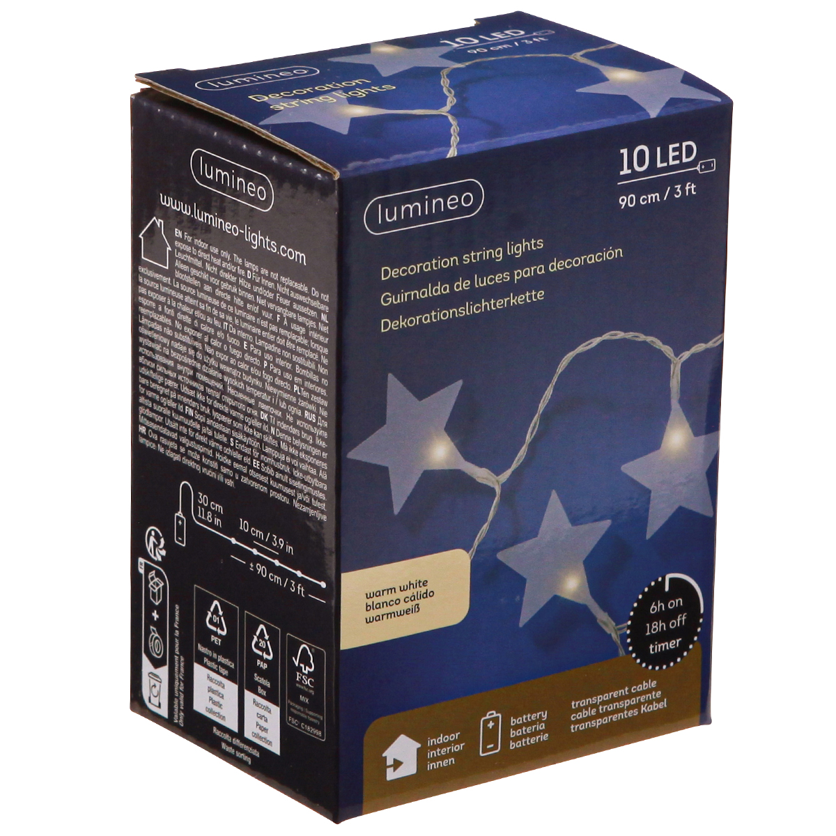 Product name: LED fairy lights stars with timer 10 LED warm white 90cm