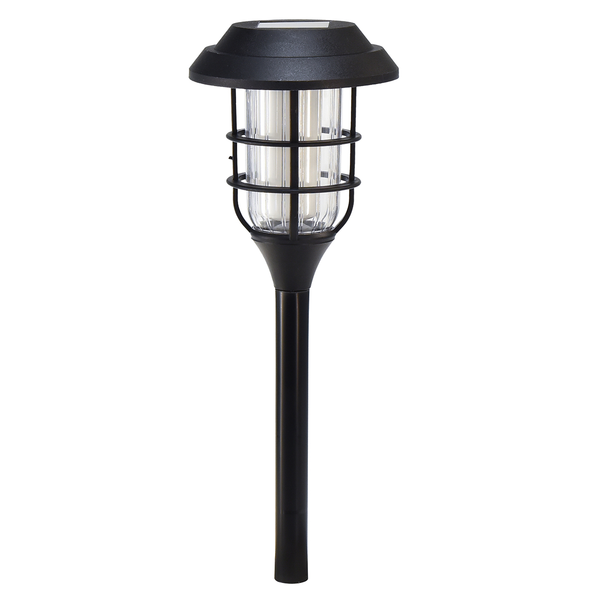 The included rechargeable batteries can also be easily replaced. The solar panel for absorbing solar energy is located on the lid of the torch. It is decoratively designed like a flattened round roof and offers the LED electronics protection from rain.