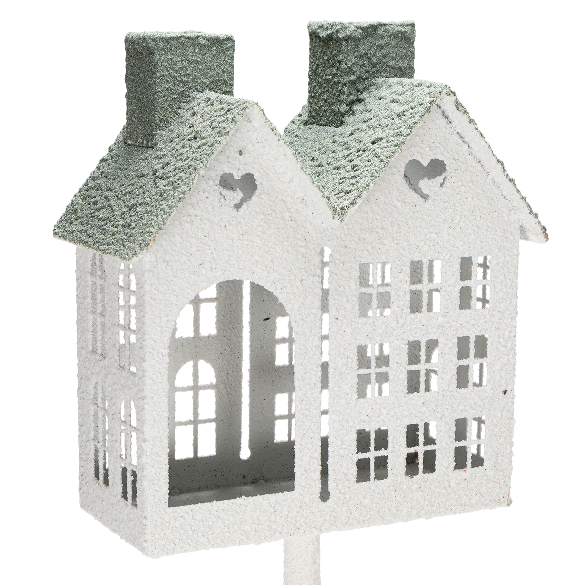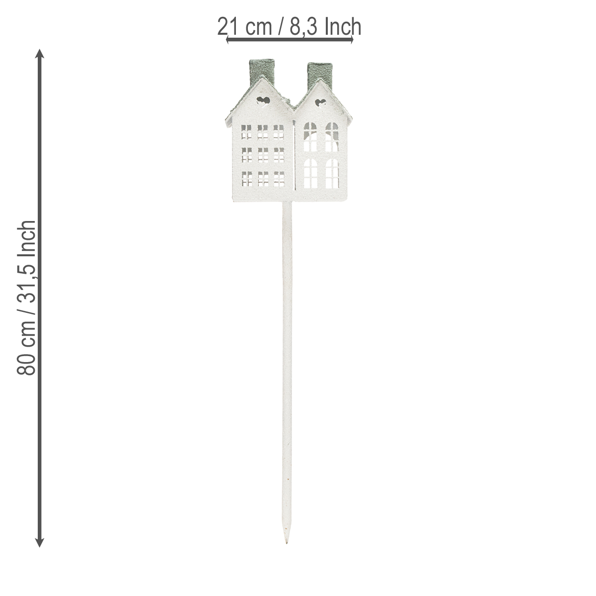 Standing 80 cm tall, this house on a stake is a real eye-catcher, perfect for balconies or as Christmas decorations in the garden. Decorate garden paths, brighten up cozy corners, or simply enhance your plant arrangements. A single tea light is all it takes to make the house glow from within, creating a warm and relaxing atmosphere. Let your creativity flow and create a stylish decorative element that will catch the eye of friends and family alike!