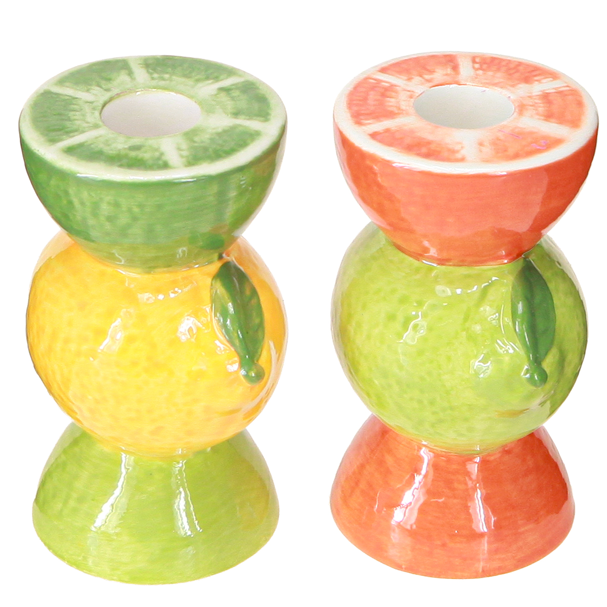 Product name: Lime and lemon decorative candle holder ceramic H10.5cm 2pcs