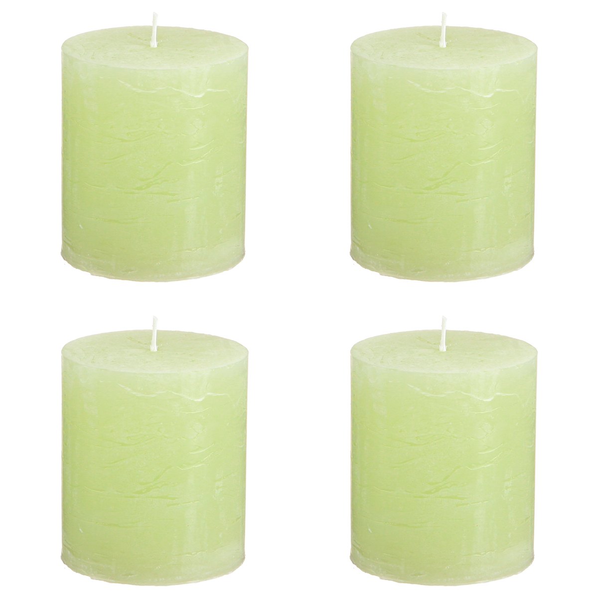 Lime Green Dyed Pillar Candles 70×80mm 4-Pack - Atmospheric Decoration & Light