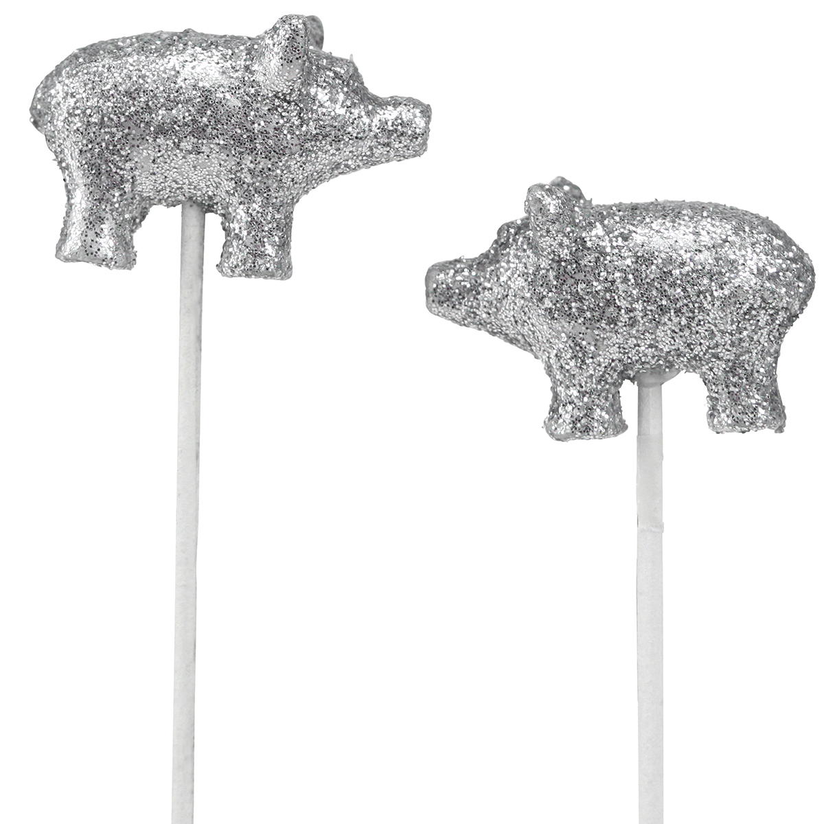 Lucky pig New Year's Eve lucky charm on a stick silver 3cm 6pcs