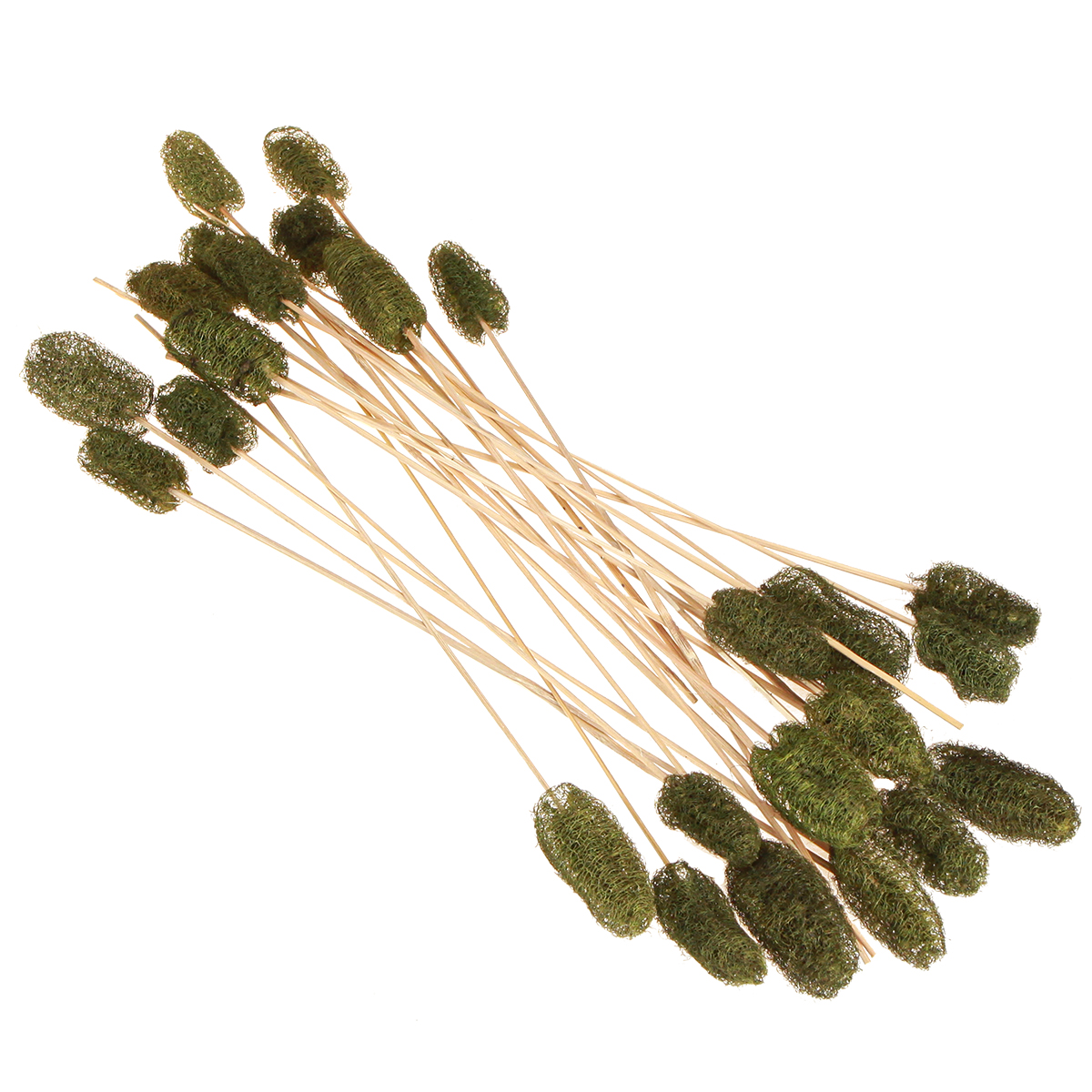 Loofah on a stick – for funeral arrangements and naturally beautiful decoration ideas in dark green