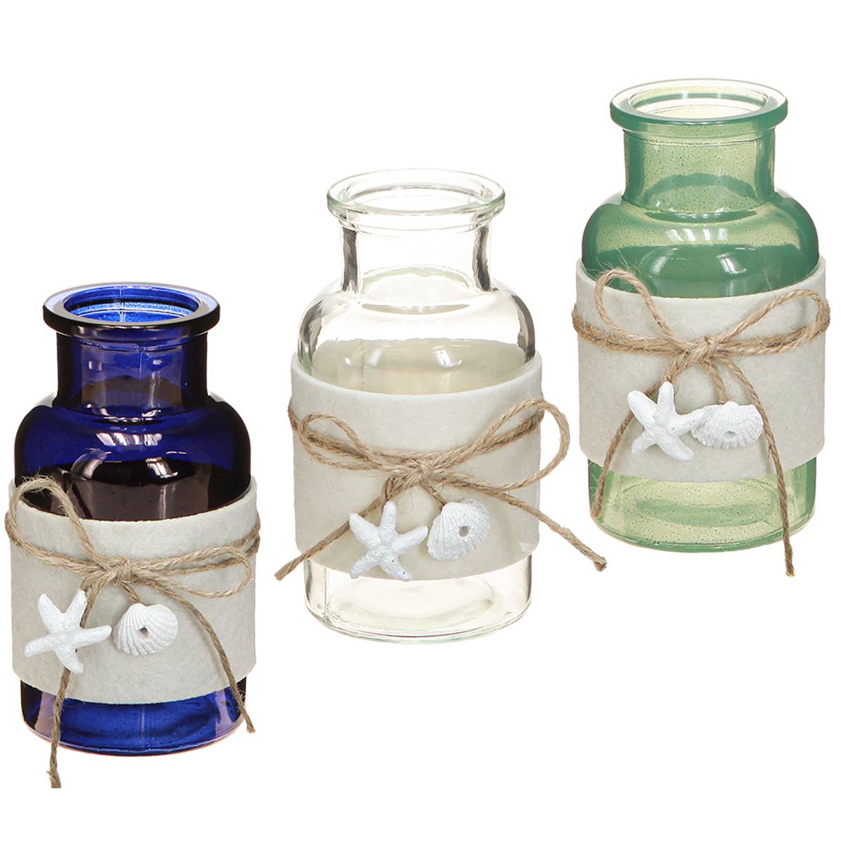 Maritime bottle vases with felt blue green white 12.5cm 3pcs