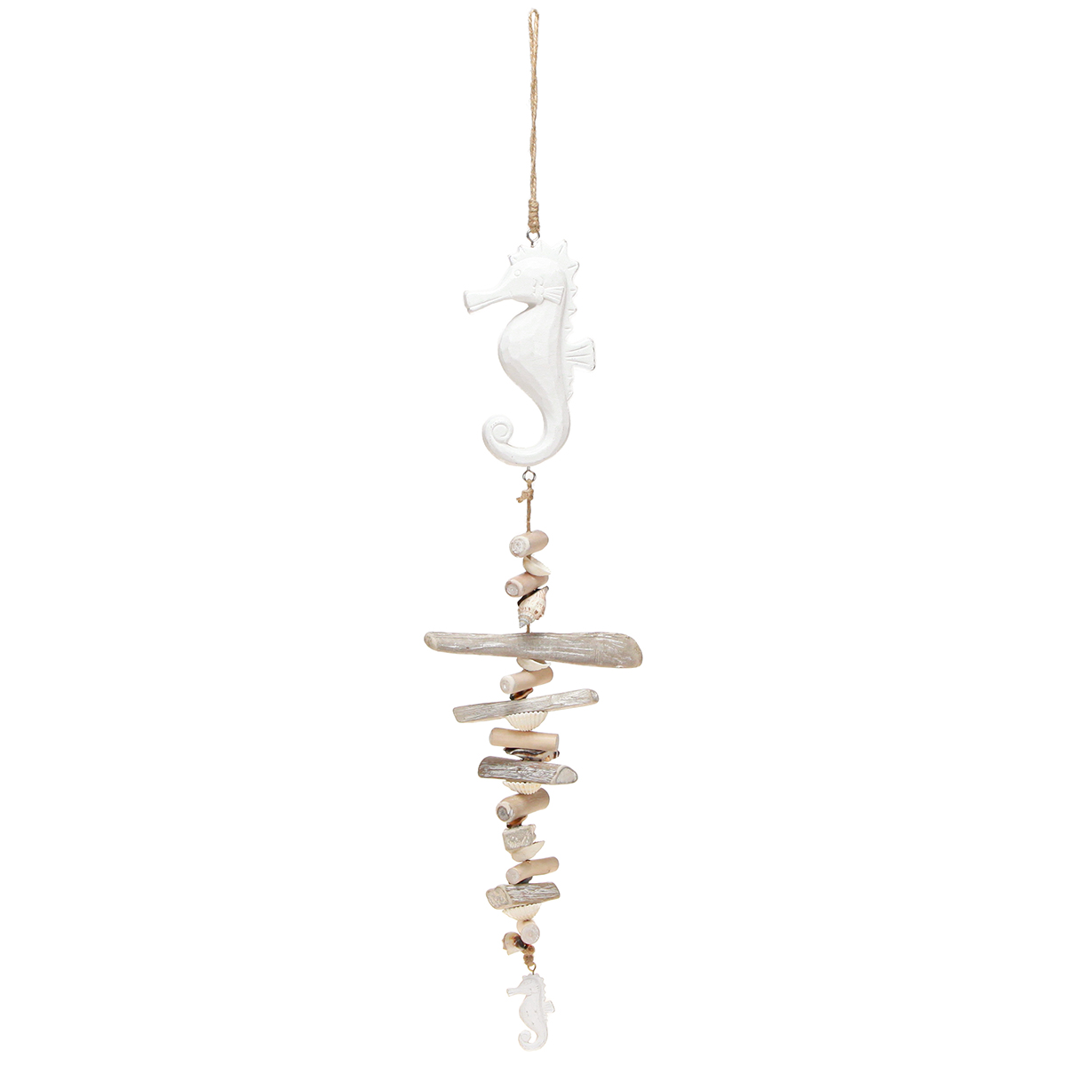 Maritime Decoration Garland Driftwood Shells Seahorse White 55cm