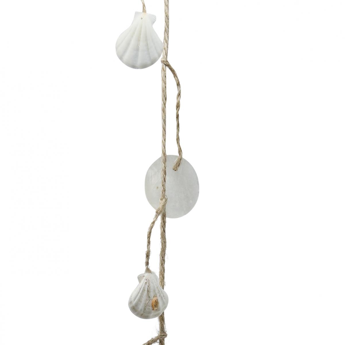 The hanging decoration can be attached to a window or the wall with two loops at the ends of the shell garland. The maritime hanging decoration is wonderful on the balcony, in the interior or on the terrace facing the garden! Whether horizontally or vertically as a hanging decoration from the ceiling, the possible uses of the shell garland decoration are countless.