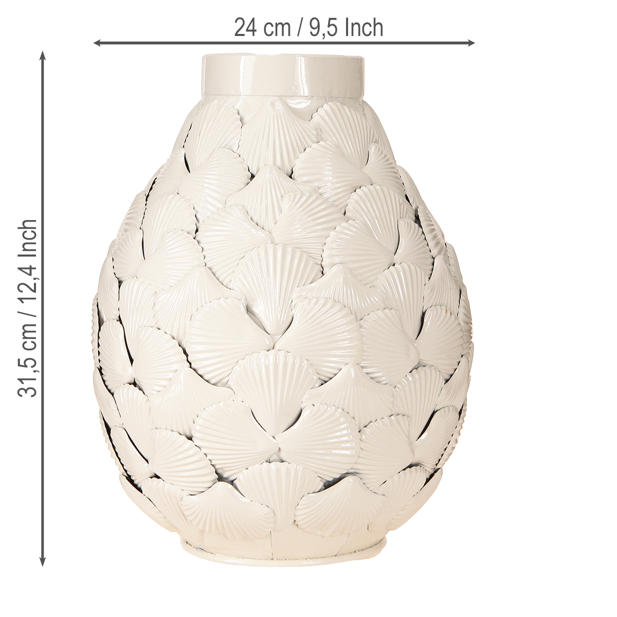 Product name: Maritime Decoration Vase Metal Vase Shells Grey White Ø24cm H31.5cm