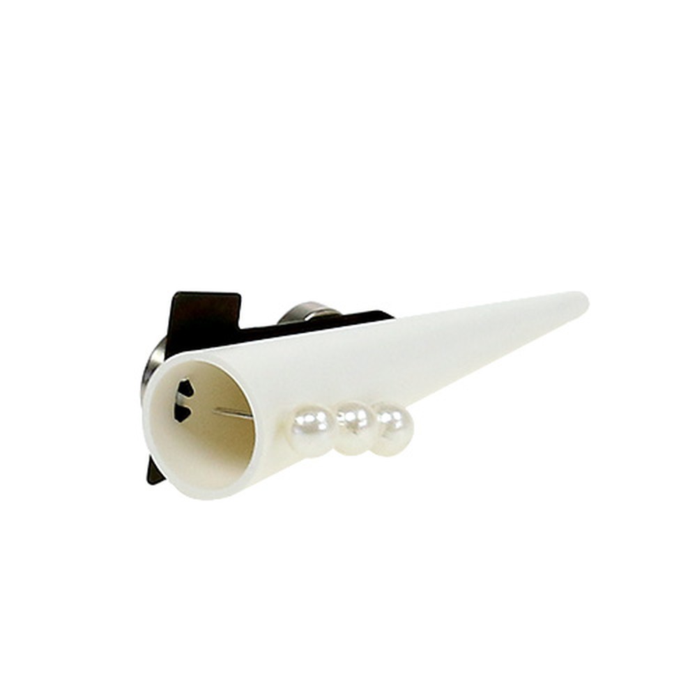 The men's plug in matt white comes with two magnets and three needles and is approximately 7 centimeters in size. The opening for the flowers is about 1.5 centimeters in diameter.