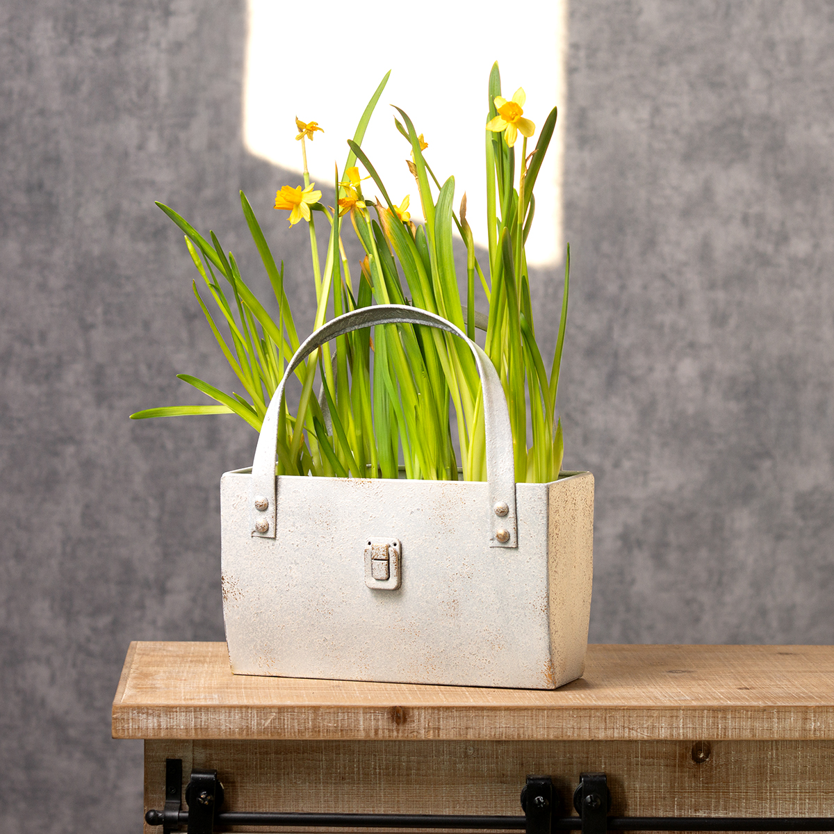 This metal bag combines modern design with timeless, rustic charm. The sturdy handle not only makes it easy to carry but also a real eye-catcher. The slightly aged, vintage-style finish adds a particularly stylish touch and blends beautifully with a variety of interior design styles, from country to industrial. Want to use this decorative metal bag as a planter? No problem! It's ideal for stylishly displaying small flower arrangements or succulents. Seasonal accents, such as autumn decorations with pumpkins or a Christmas arrangement filled with fir branches, also look fantastic in this bag. Equally practical: Use the bag as an organizer for gardening tools like scissors or gloves. This keeps everything within easy reach and looking attractive. The neutral, matte gray color complements almost any setting and harmonizes wonderfully with other decorative elements. For example, combine the metal bag with our simple glass vases or rustic wooden bowls from Floristik24 to create even more harmony in your decor. A true all-rounder!