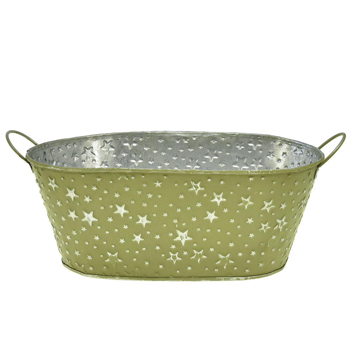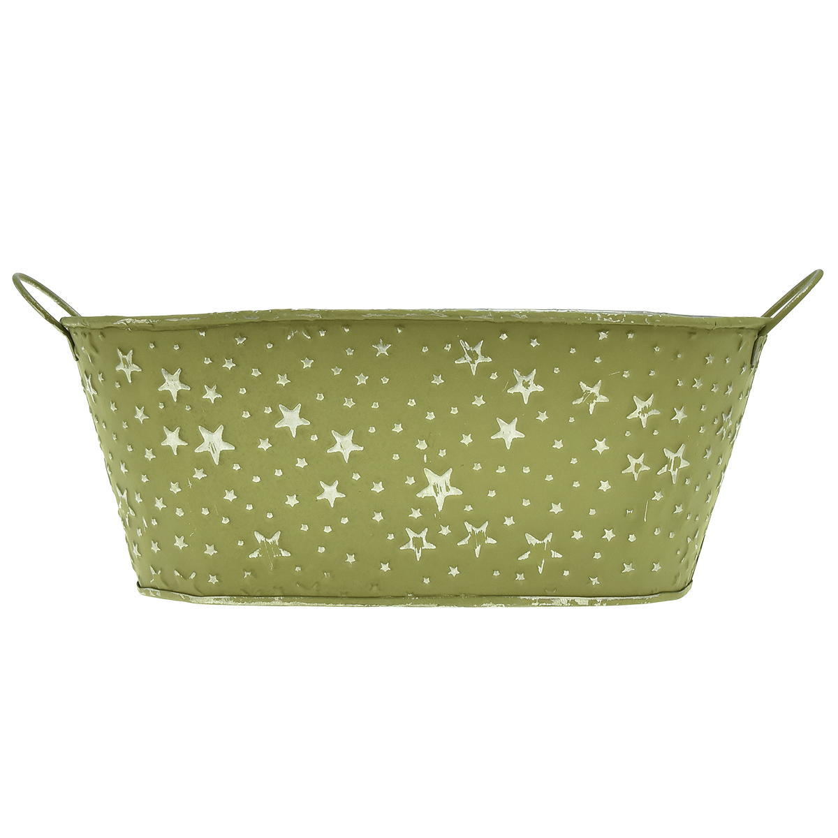 Metal bowl oval stars and handles green 31×16cm H12,5cm