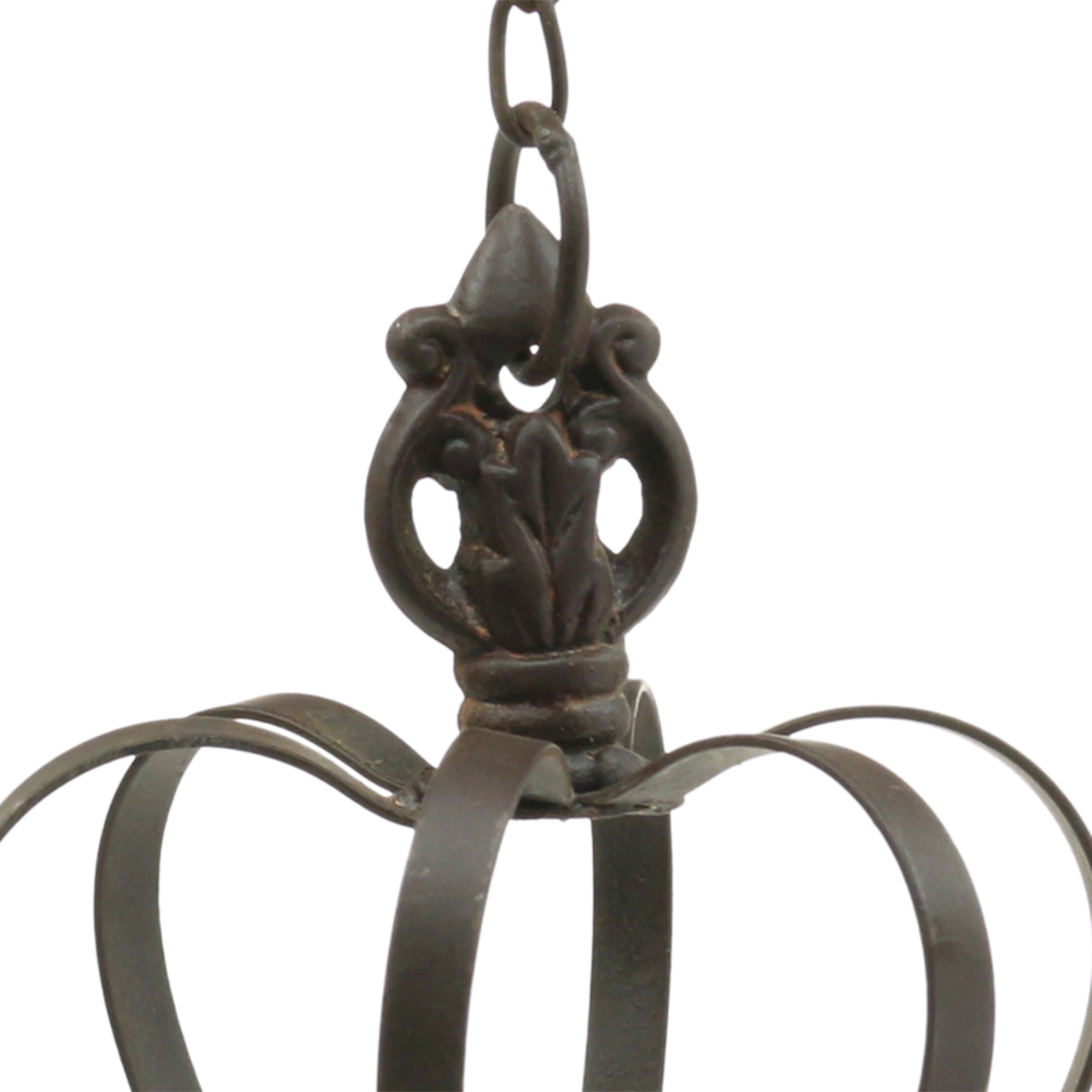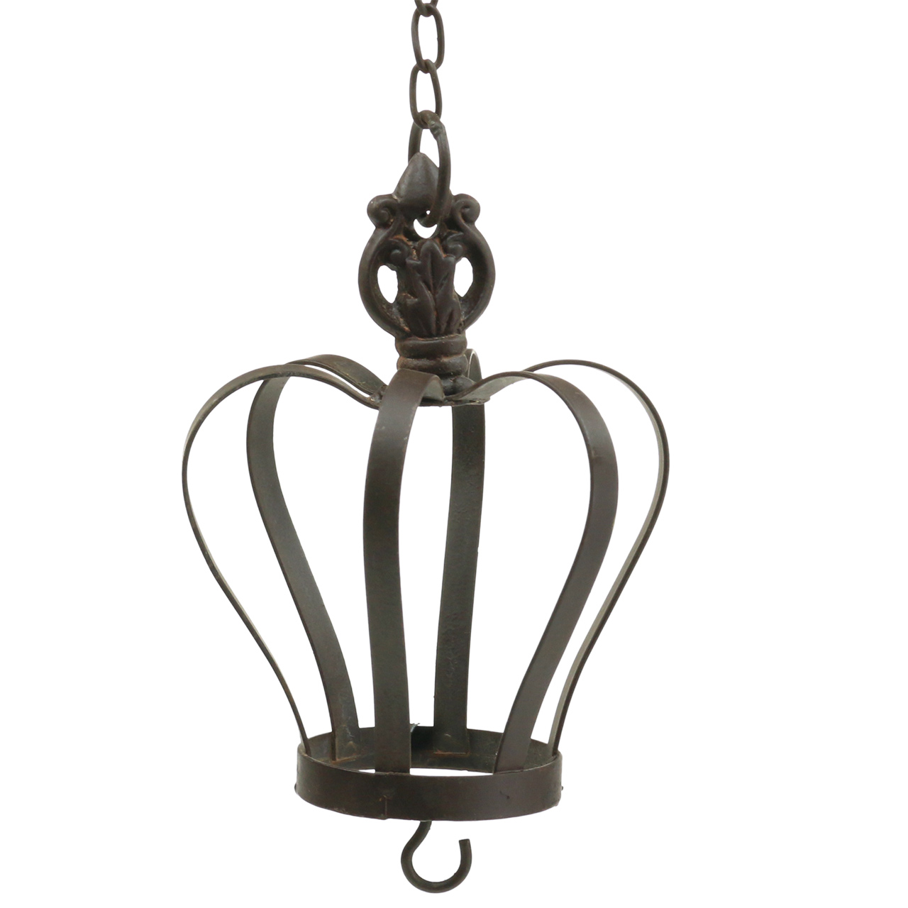 The metal crown with hook impresses with its antique rust-brown look. At the top, the decorative crown has an ornate element with a leaf and a hook at the bottom.