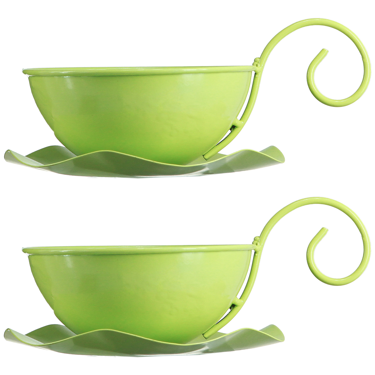 Metal decorative cup apple green with saucer H8cm Ø11.5cm 2pcs