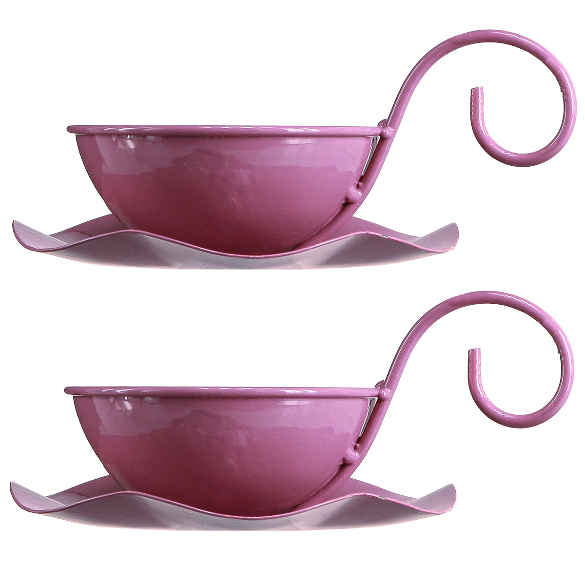 Metal decorative cup with saucer pink H8cm Ø11.5cm 2pcs