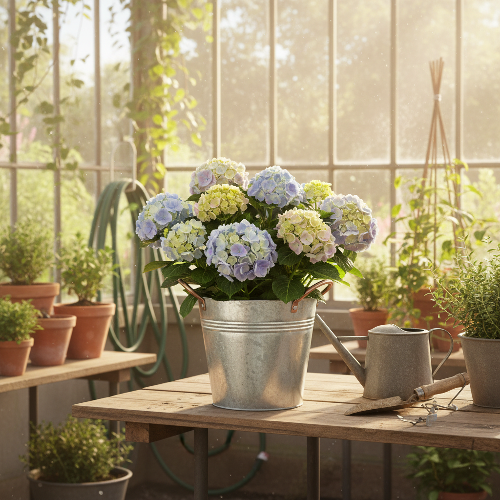 The copper-colored handles of this small metal bucket create an exciting visual contrast to the silver-colored decorative bucket. The galvanized surface even gives the planter a slightly nostalgic look. Before planting, it is advisable to line the metal container with foil to ensure the bucket is protected from corrosion.