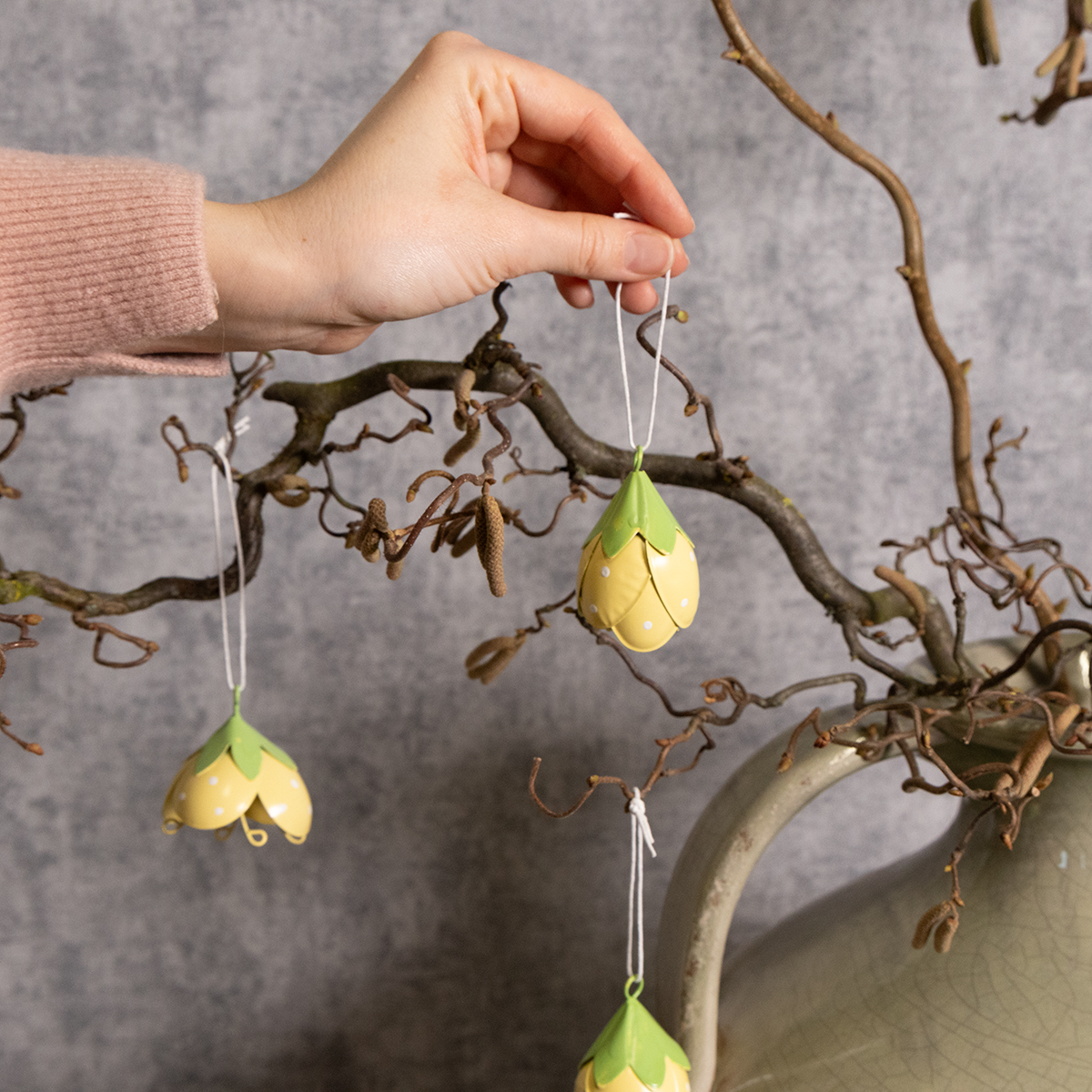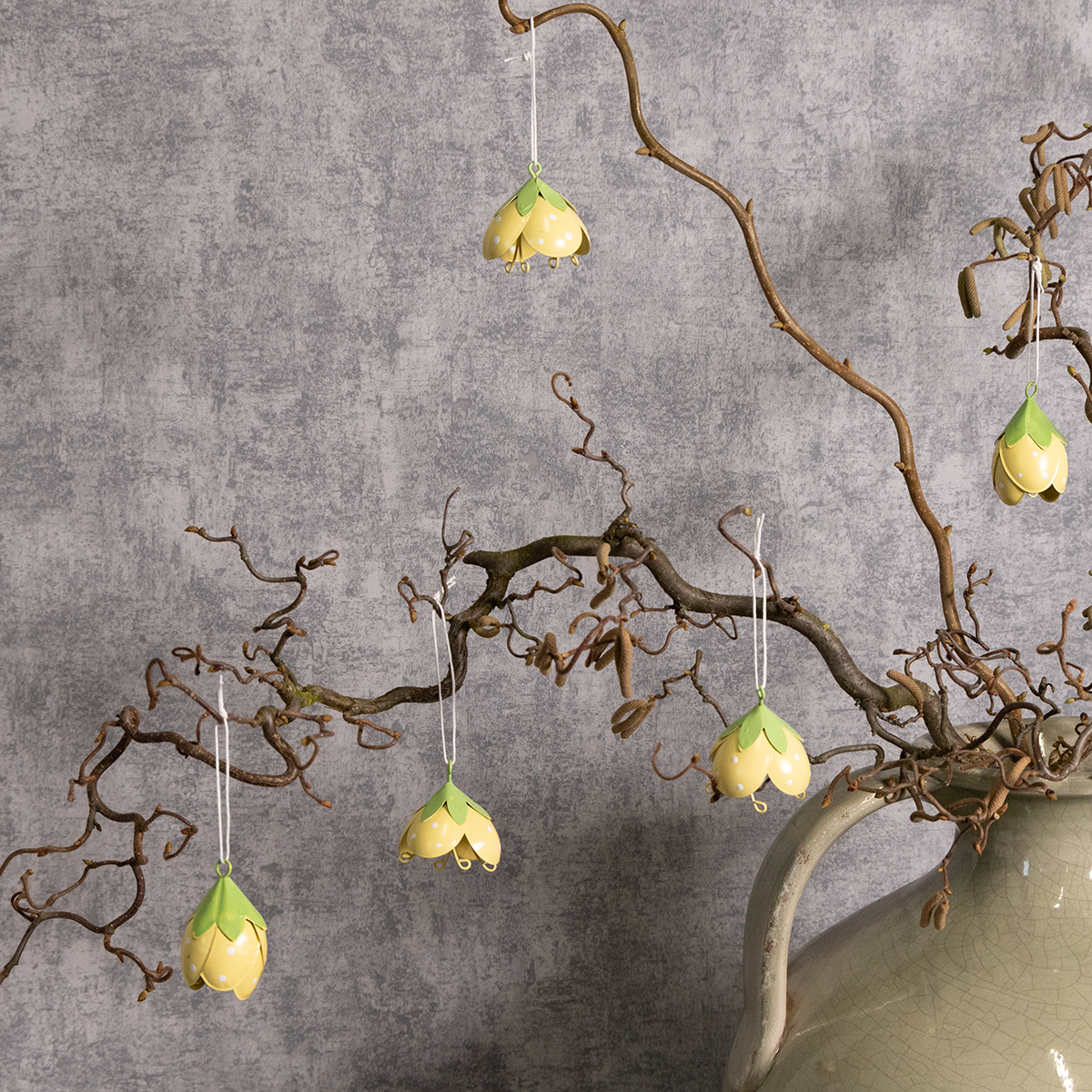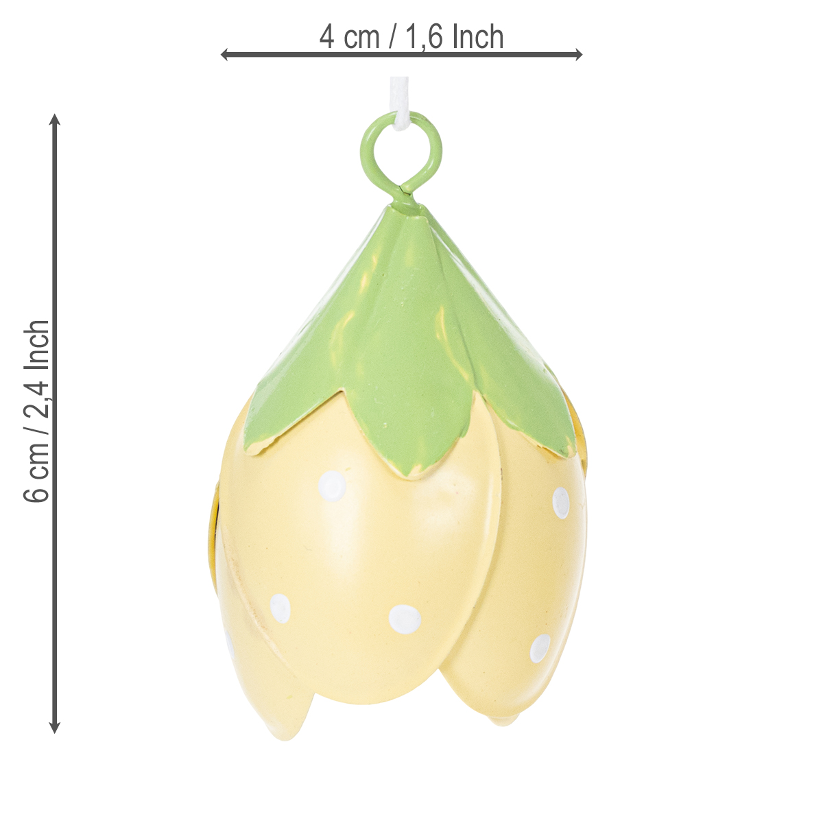 These hanging metal flowers are ideal for anyone who loves playful and romantic decorations. Measuring 6 cm in height and 4 cm in diameter, they are not too large, yet a stylish eye-catcher. The delicate yellow and green colors create a fresh look and integrate beautifully into a variety of styles – from country style and shabby chic to classic floral arrangements. Thanks to their high-quality metal construction, the flowers are robust and suitable for both indoor and outdoor use. They look particularly charming in an entryway, where they welcome guests with a cheerful touch.