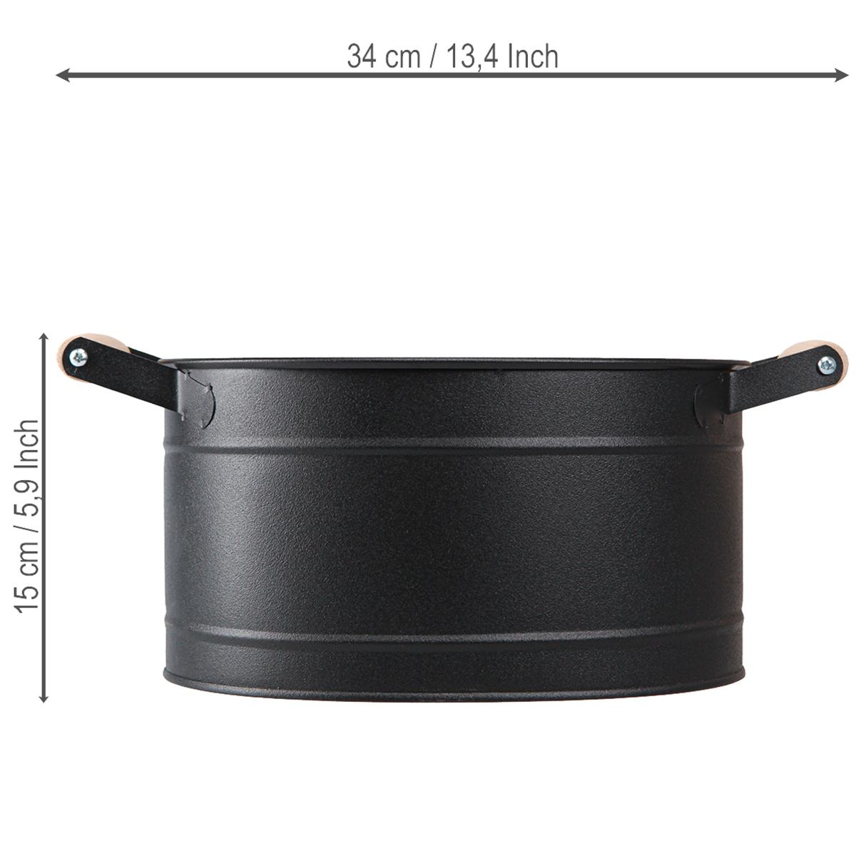 Discover the timeless charm of the oval-shaped metal flowerpot with natural-colored wooden handles. This metal bowl in elegant black is not only functional, but also adds a stylish touch to any room. Ideal for plants or as a chic storage solution, this metal decoration brings elegance to your home.