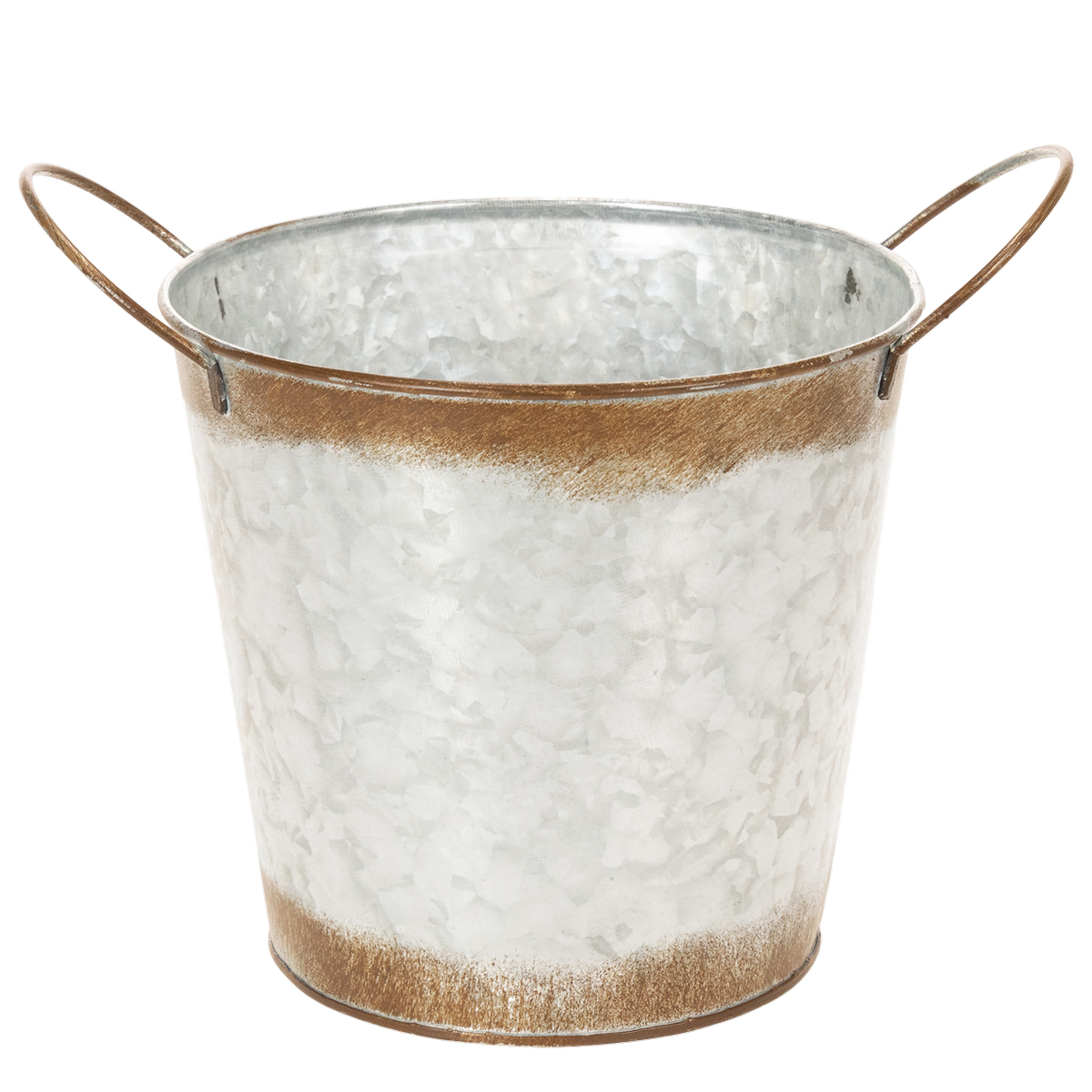 A metal planter is perfect as a versatile flower bowl! You can plant directly into the plant pot with handles or use it as an attractive cachepot.
