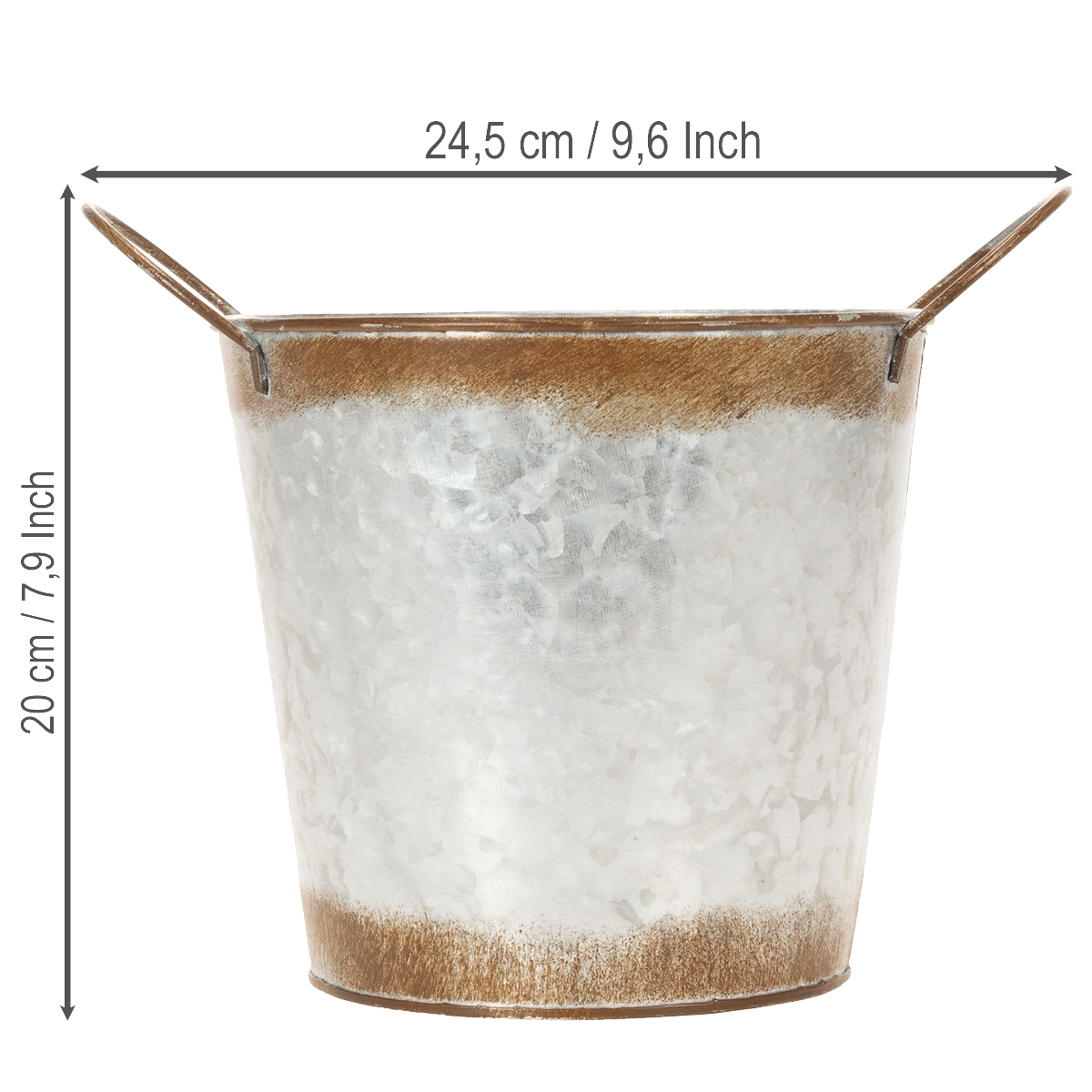 The metal decoration is not only practical, it is characterized in particular by its rustic vintage look, which the silver flower pot gets by decorating its edges with patina.