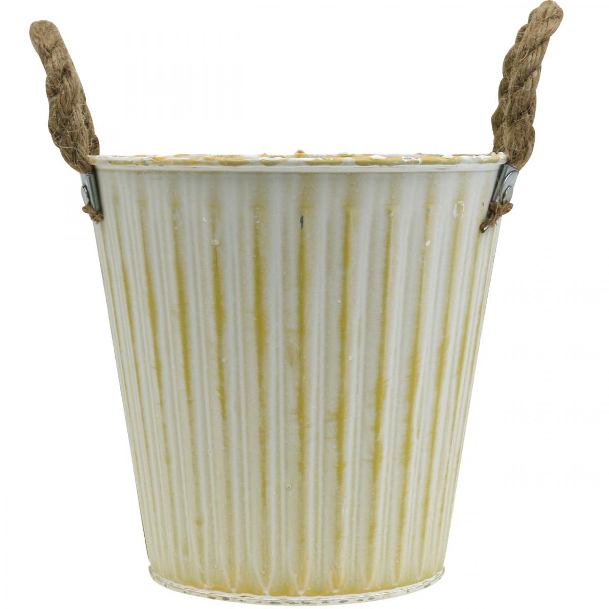 Metal pot, spring decoration, planter with handles Yellow Shabby Chic Ø18cm H17.5cm