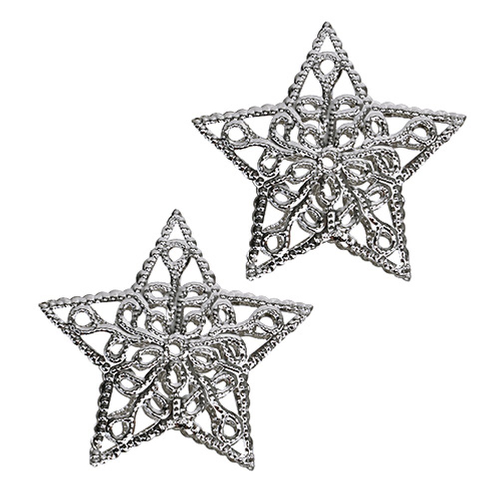 The metal star in silver is a total of 20 pieces in a bag. Each metal star is processed in exactly the same way and has a size of about 6 centimeters; the ring has a diameter of about 1 centimeter.