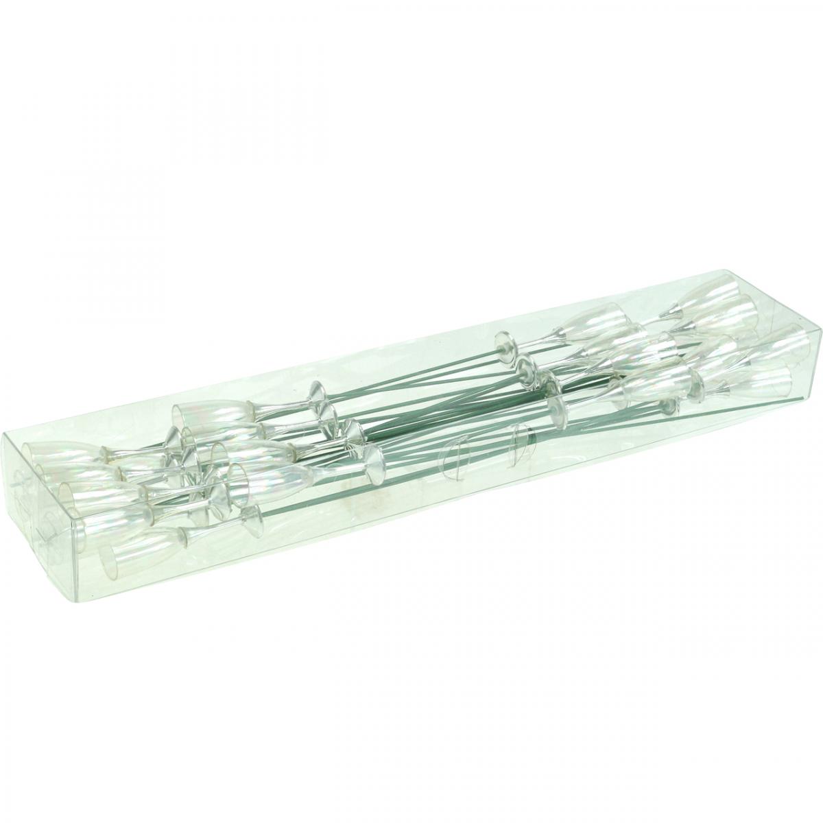 Mini champagne glass New Year's Eve decoration for sticking 7.5 cm 24 pcs