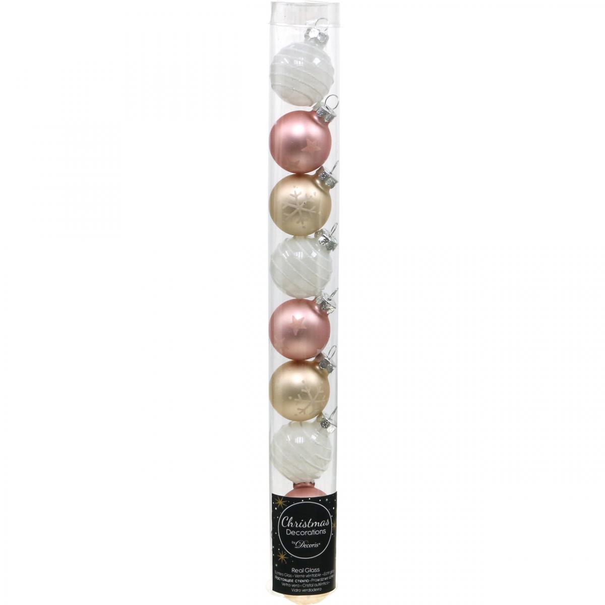 Mini Christmas balls cream, pink, white real glass Ø3cm 9pcs
