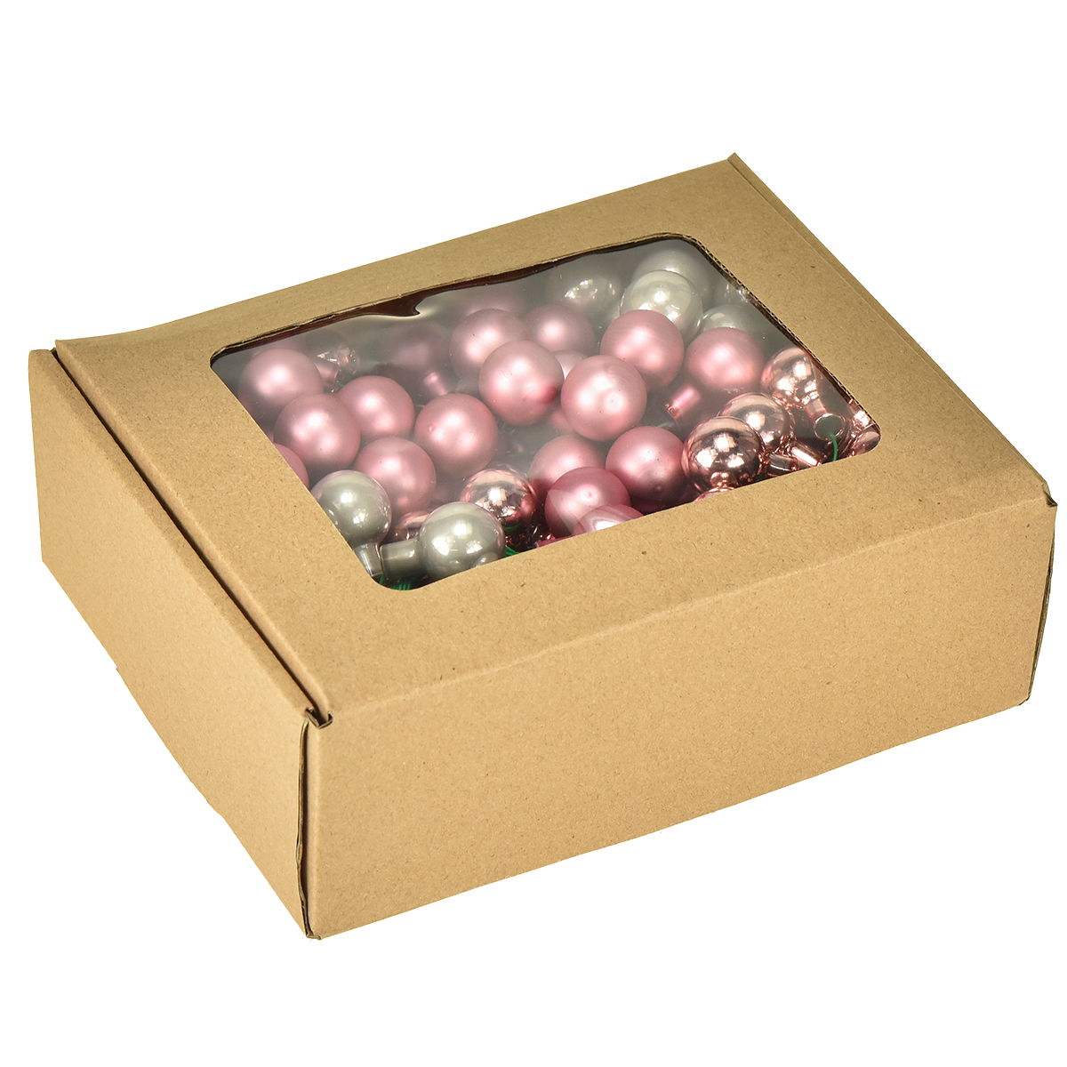 Mini Christmas balls glass mirror berries pink cream Ø20mm 140 pcs