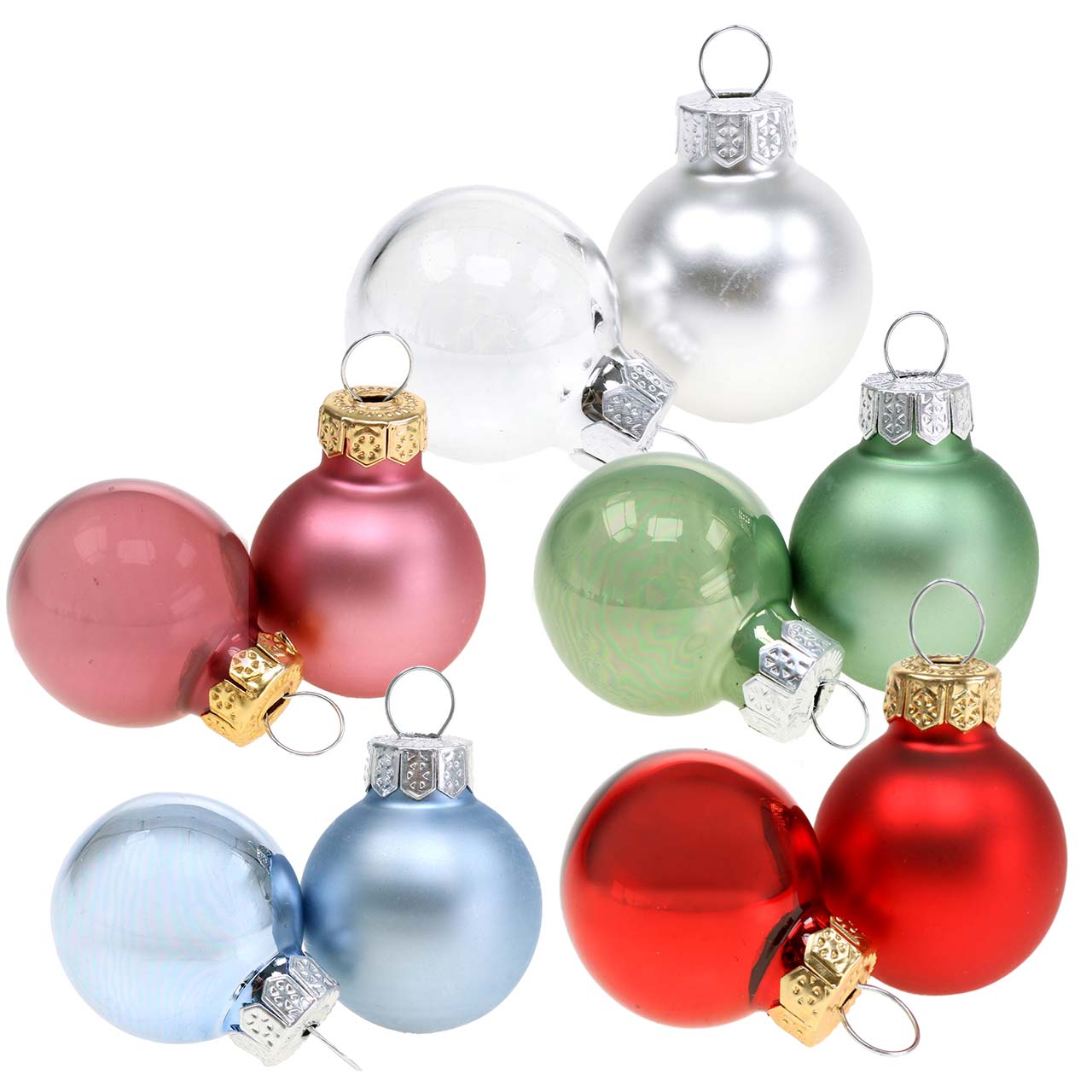 The mini Christmas balls have a diameter of approximately 2.5 centimeters. Each pack contains shiny balls and matte balls of the same color.