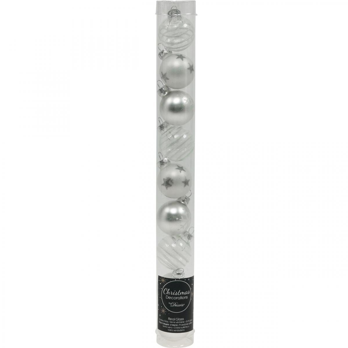 Mini Christmas balls white, silver real glass Ø3cm 9 pcs