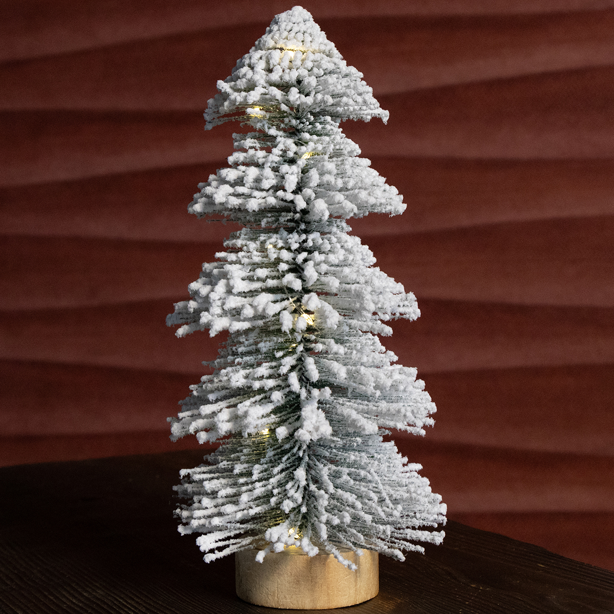 A snow-covered Christmas tree spreads Christmas magic throughout your home, even in miniature! Christmas is just around the corner, and you're already looking for beautiful little touches to make your home more cozy and atmospheric. This is where our mini Christmas tree comes in: an enchanting LED Christmas tree with snowy branches that effortlessly brings a touch of winter wonderland to any room. Whether on the windowsill, in the living room, or on your desk – this small illuminated Christmas tree is guaranteed to create a cozy, festive atmosphere. The detailed look with artificial snow, the warm white LEDs, and the high-quality wooden base with hidden battery compartment make this little tree a real eye-catcher. Simple, practical, and beautiful – just the thing for the Advent season!