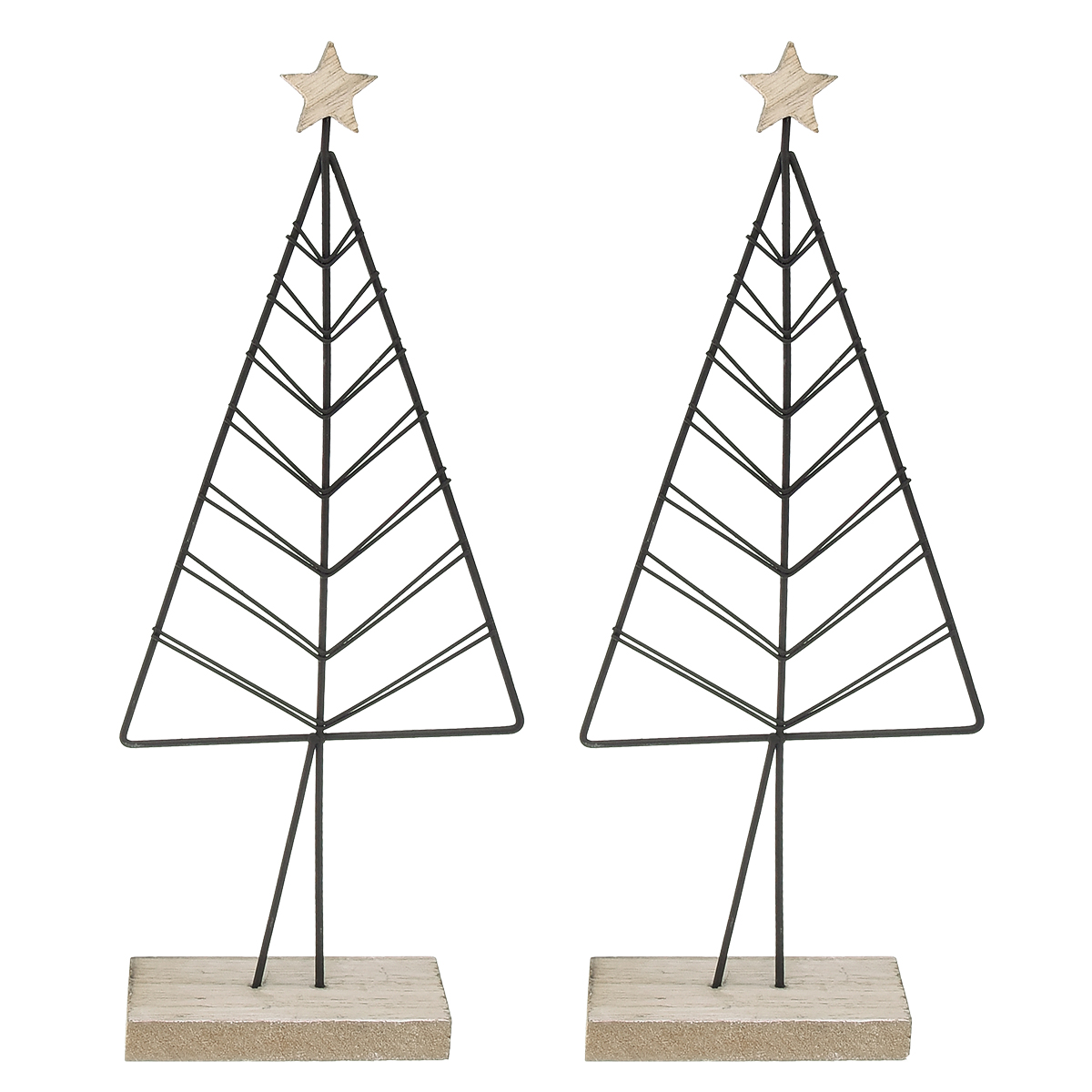 Mini Christmas tree metal wood black natural 28cm 2pcs