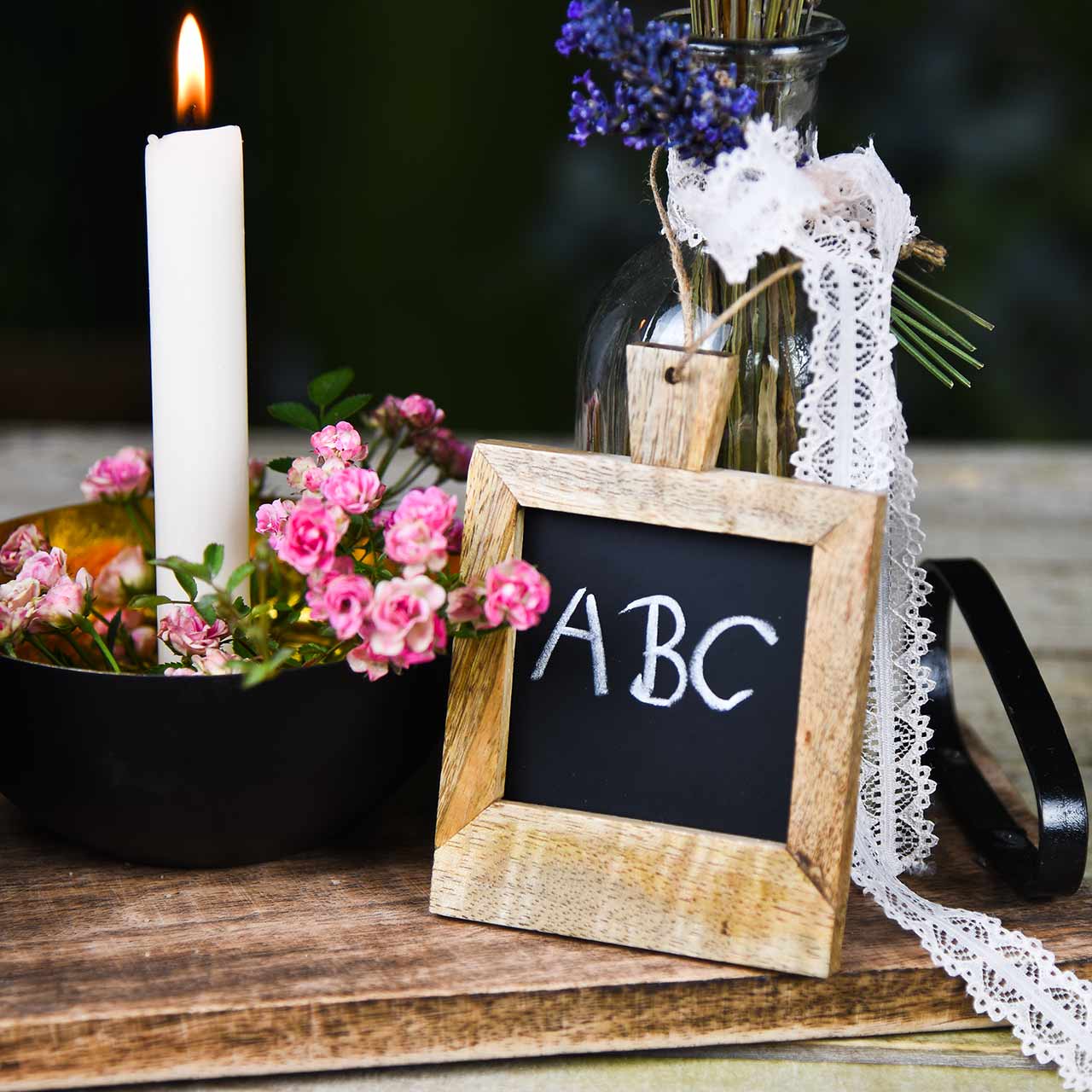 Gift tags for the start of school, summer decorations with plant names on the chalk board or happy wishes for the Christmas decorations - the board can be individually labeled and wiped off again. Just like back in school! This gives you a versatile, reusable decoration with the wooden board! So whether you want to decorate the classroom at the beginning of school or want to decorate school cones in the shop window decoration in an original way - the mini board always offers a smart, thematically appropriate school decoration. On the other hand, it can be used practically as a small memo board or as a fancy price tag that you can hang up on the shelf.