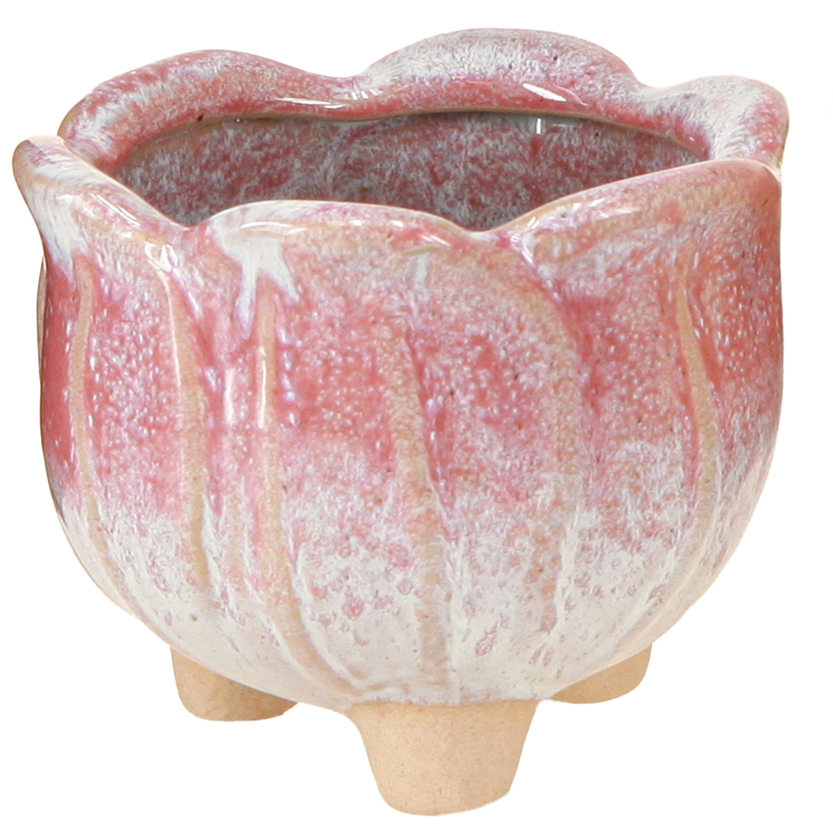 Add a touch of elegance to your home with our decorative mini ceramic planters, perfect as stylish accents in small spaces. These charming mini flowerpots are designed like blossoms and are ideal for succulents and mini herb gardens. The ceramic pots offer an extremely flexible solution for creatively inspired decorating ideas in miniature format. Each pot has been lovingly handcrafted and features the organic, vibrant tones of summer, glazed and whitened to give your living space a touch of freshness and lightness. These small masterpieces stand securely on three feet, which are equipped with plastic protectors to offer optimal protection for your surfaces. Whether on your home office desk or as a centerpiece on the windowsill, these versatile mini ceramic flowerpots add accents and are real eye-catchers. Give your plants a stylish home by lining the planters with foil before planting, as they are not 100% waterproof.