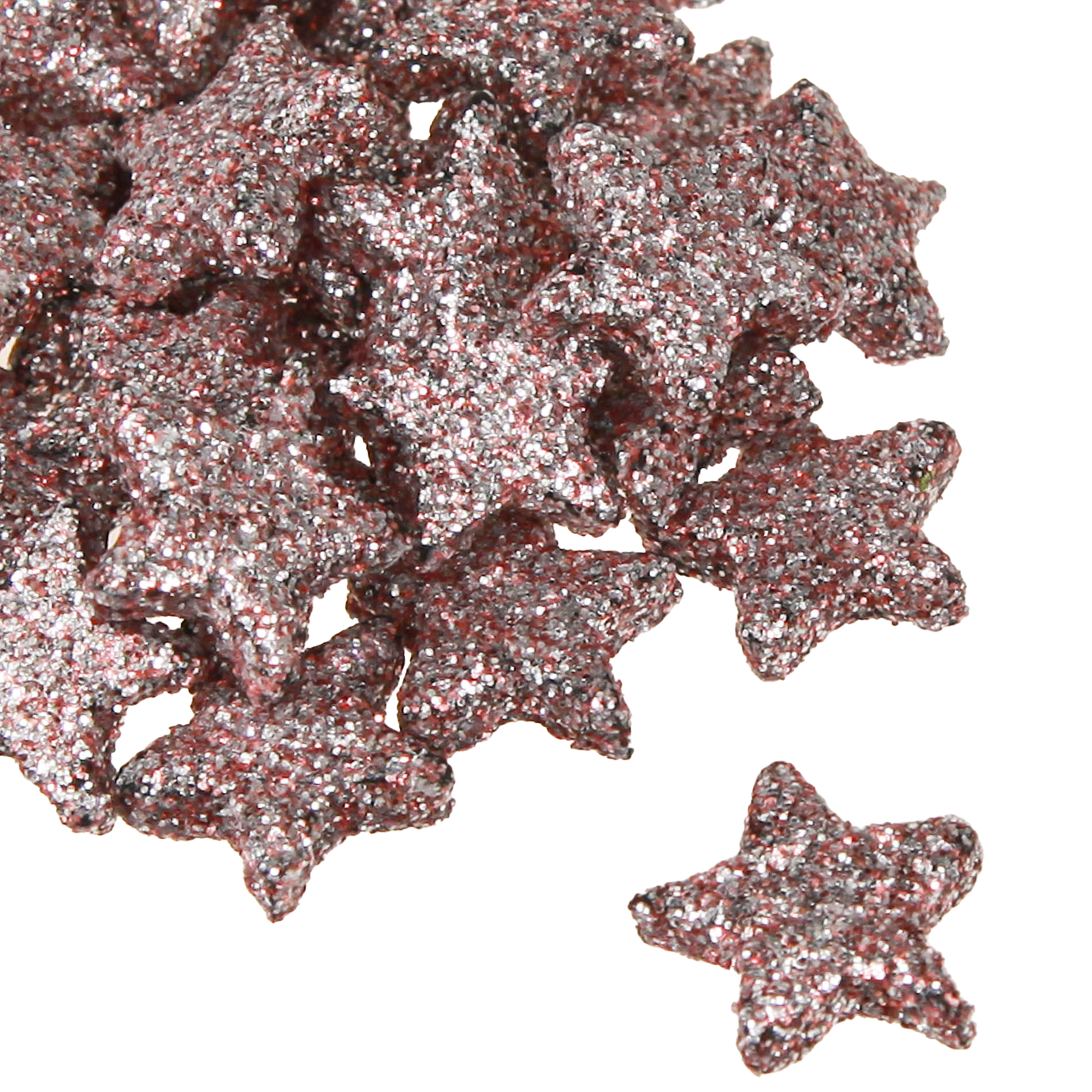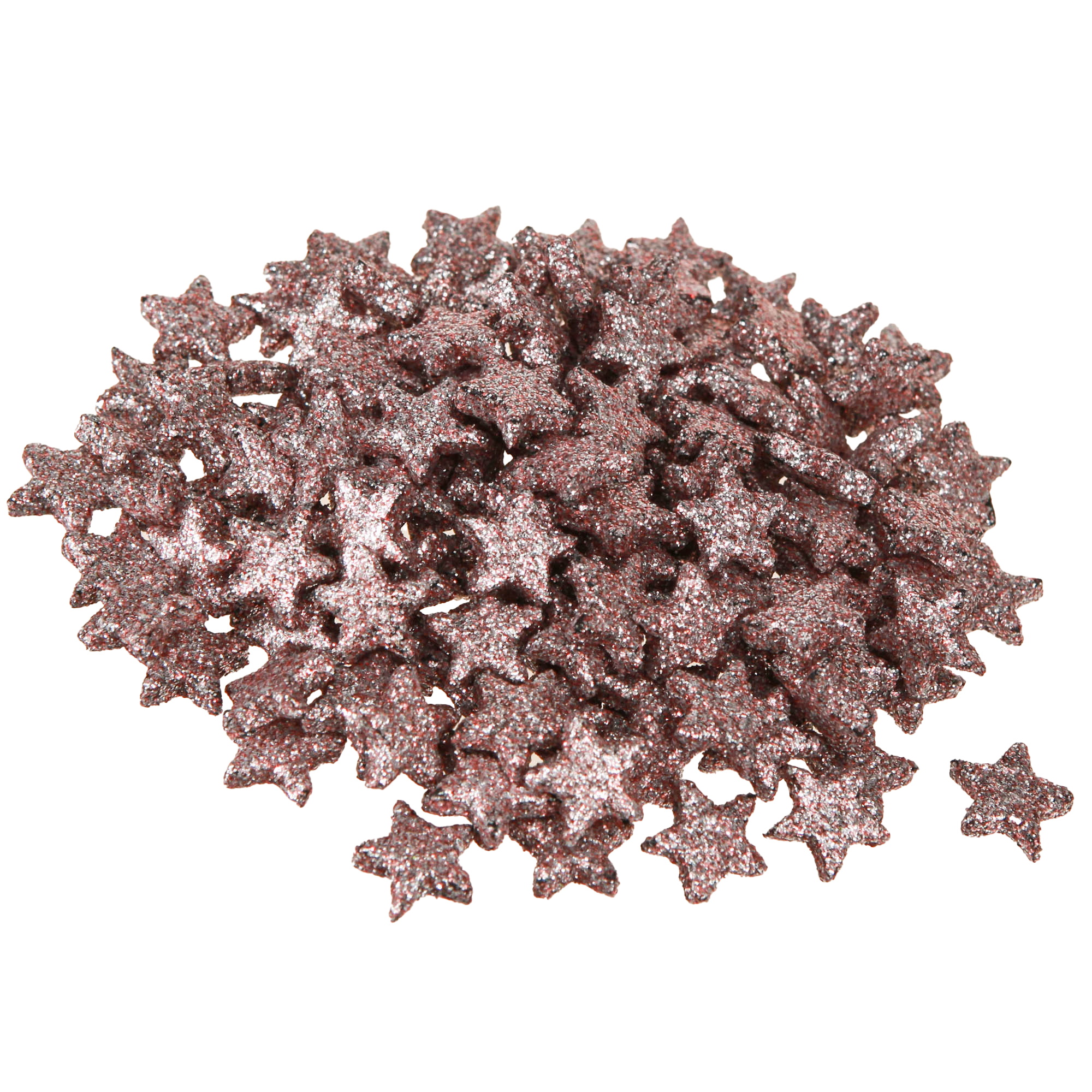 The star with glitter in light pink is delivered as a scatter decoration in a small box with a total of 144 pieces. The stars are all approximately 1.5 centimeters in size.