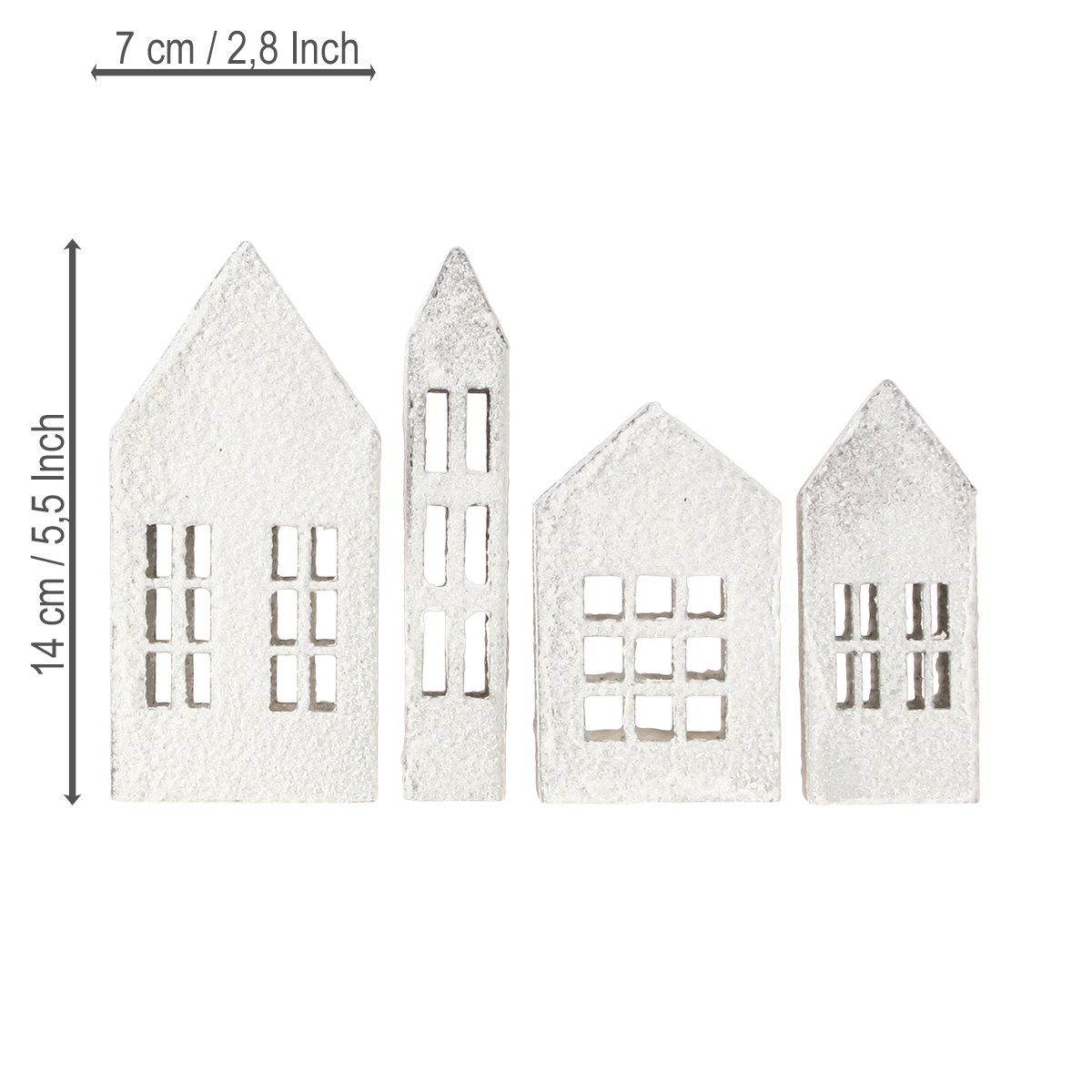 Whether romantically arranged on the dining table with candles, as a stylish eye-catcher on the living room shelf, or as a subtle addition to your windowsill decoration – these mini houses always create a welcoming atmosphere. Thanks to the set with four different designs, you can recreate a small town or place them in various locations to create a harmonious ambiance. They look especially charming when combined with other accessories such as fairy lights, eucalyptus branches, or simple glass vases – give it a try!
