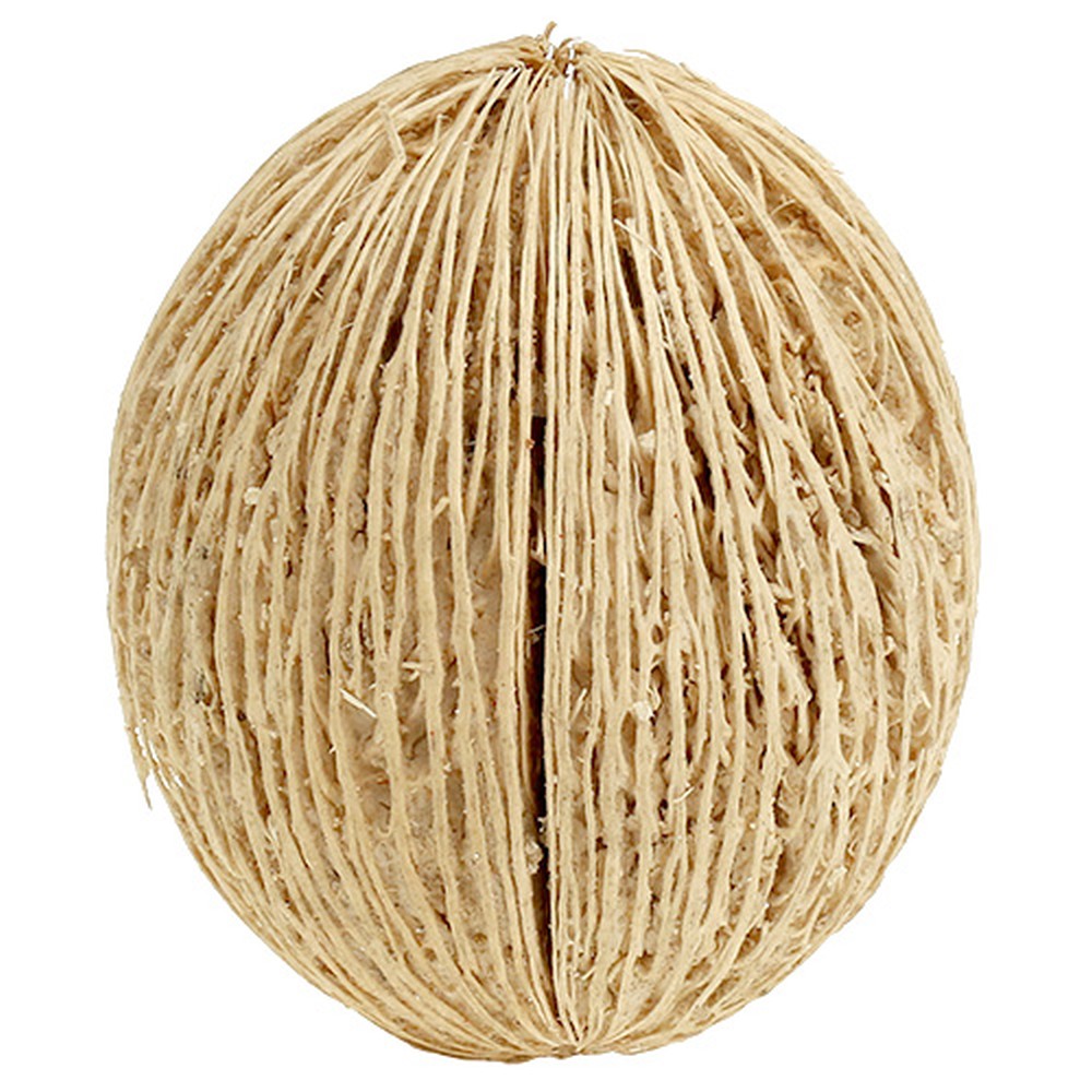 The bleached Mintolla ball is in an assorted set of 10 pieces and is delivered in a bag. As a natural product, each ball can vary slightly from the specified dimensions. Each Dekonuss is approximately 8 to 10 centimeters in size.